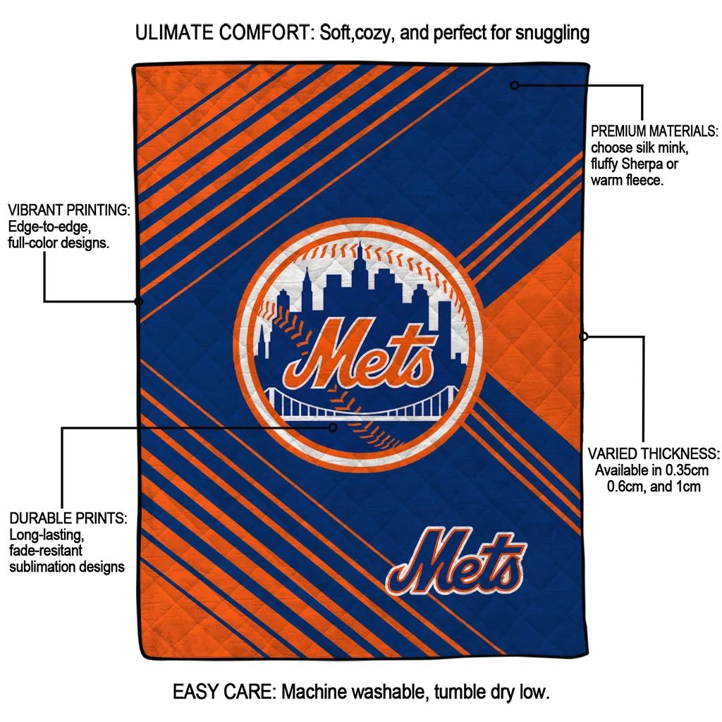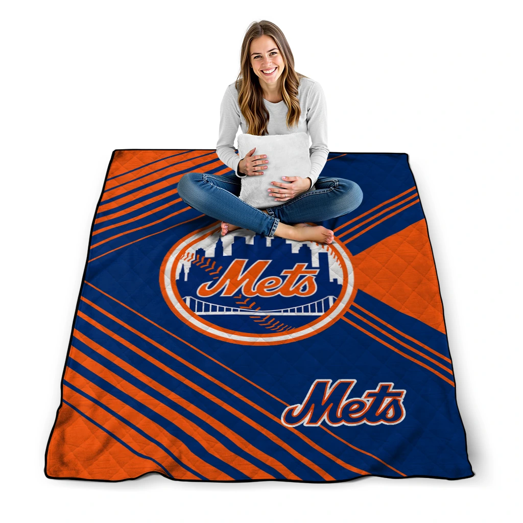Wrap yourself in warmth and pride with the New York Mets Arrow Layers Blue Quilt Blanket from the New York Mets Blankets collection at Yes That Blanket. Made from 100% premium quilting-weight polyester blended with a touch of microfiber, this quilt offers a smooth, soft finish you’ll love. Choose between two quilting styles—Stipple or Diagonal—and enjoy the comfort of a cotton-filled layer inside that adds extra coziness for every season. The border is available in classic black or white, giving your design a clean, timeless edge.