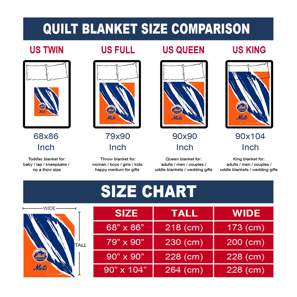 Wrap yourself in warmth and pride with the New York Mets Stroke Art Blue White Quilt Blanket from the New York Mets Blankets collection at Yes That Blanket. Made from 100% premium quilting-weight polyester blended with a touch of microfiber, this quilt offers a smooth, soft finish you’ll love. Choose between two quilting styles—Stipple or Diagonal—and enjoy the comfort of a cotton-filled layer inside that adds extra coziness for every season. The border is available in classic black or white, giving your design a clean, timeless edge.