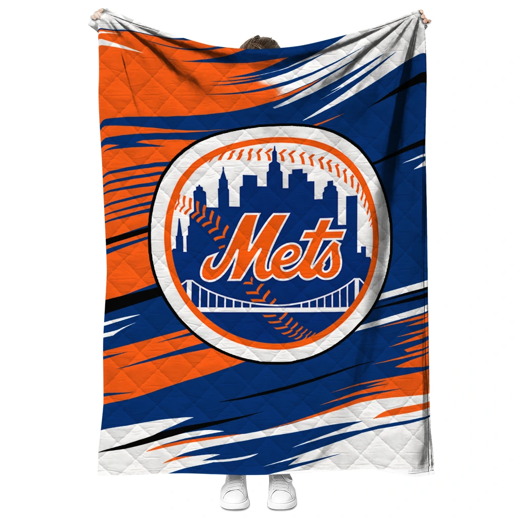Wrap yourself in warmth and pride with the New York Mets Wild Lines Blue White Quilt Blanket from the New York Mets Blankets collection at Yes That Blanket. Made from 100% premium quilting-weight polyester blended with a touch of microfiber, this quilt offers a smooth, soft finish you’ll love. Choose between two quilting styles—Stipple or Diagonal—and enjoy the comfort of a cotton-filled layer inside that adds extra coziness for every season. The border is available in classic black or white, giving your design a clean, timeless edge.