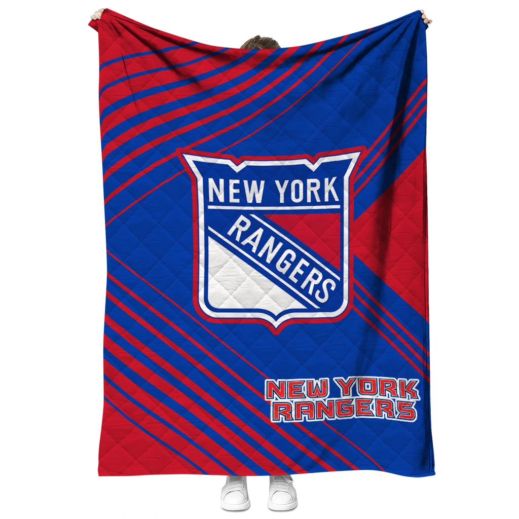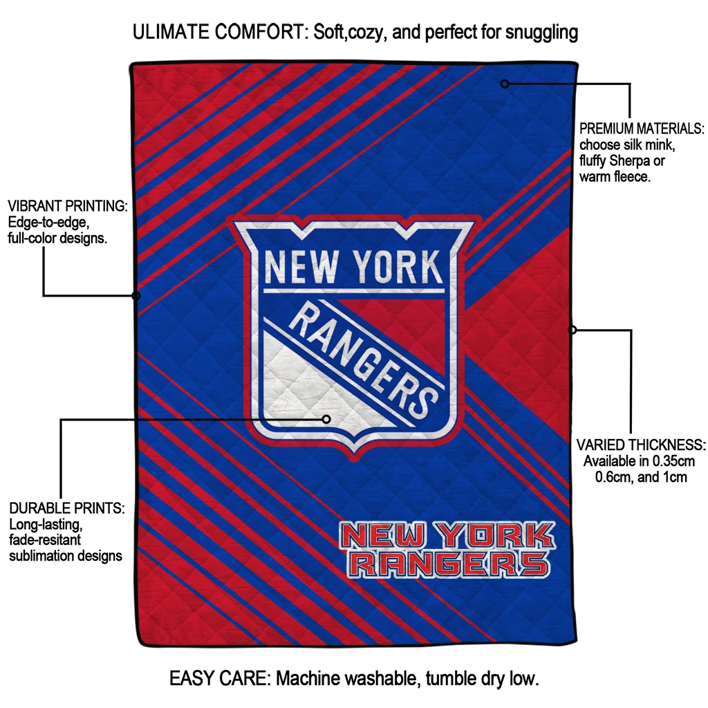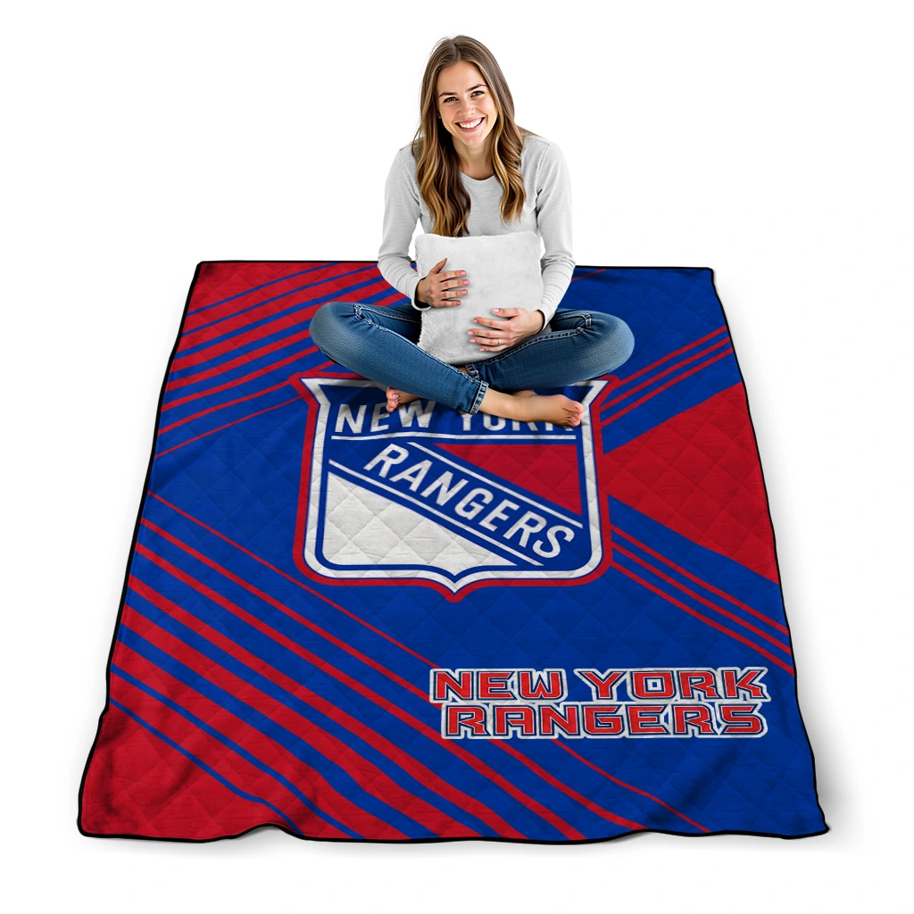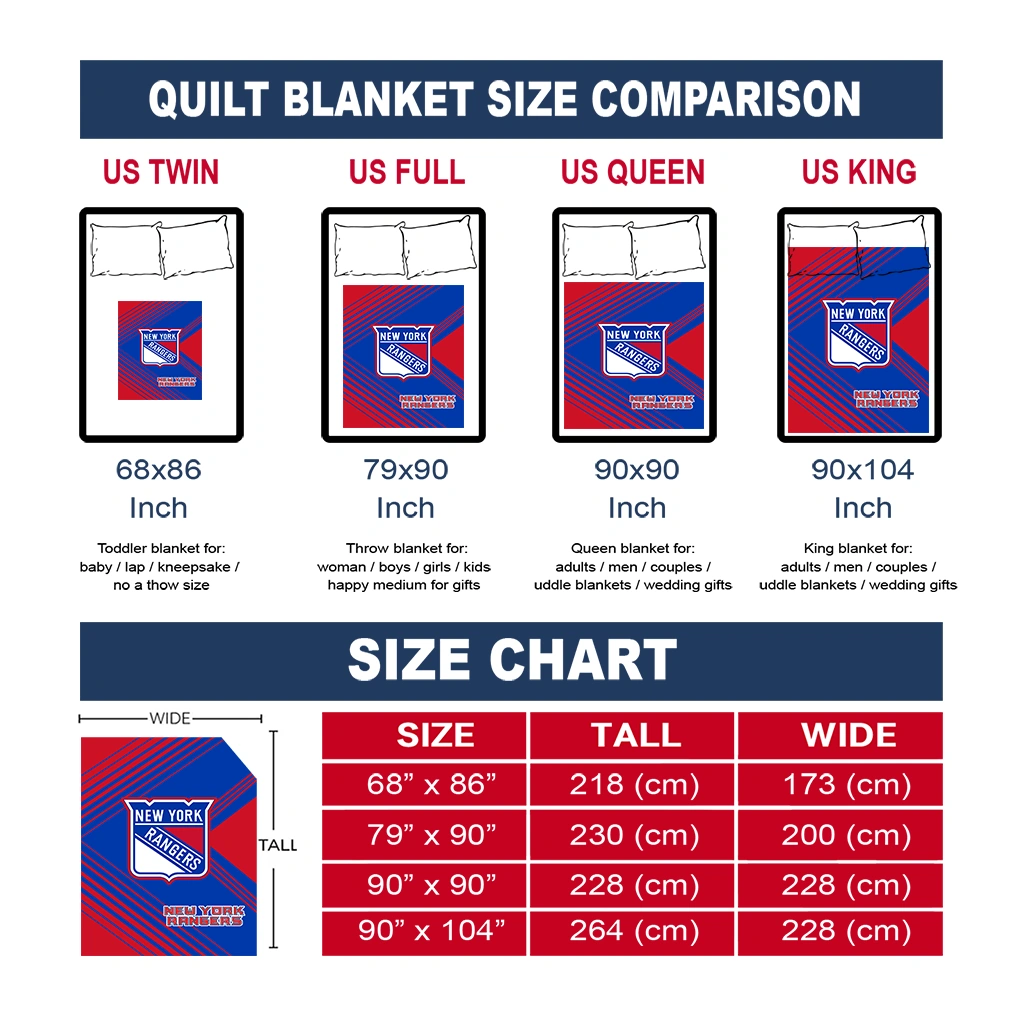 Wrap yourself in warmth and pride with the New York Rangers Arrow Layers Blue Quilt Blanket from the New York Rangers Blankets collection at Yes That Blanket. Made from 100% premium quilting-weight polyester blended with a touch of microfiber, this quilt offers a smooth, soft finish you’ll love. Choose between two quilting styles—Stipple or Diagonal—and enjoy the comfort of a cotton-filled layer inside that adds extra coziness for every season. The border is available in classic black or white, giving your design a clean, timeless edge.