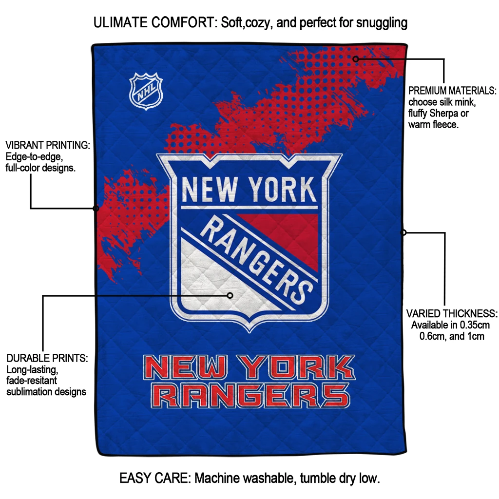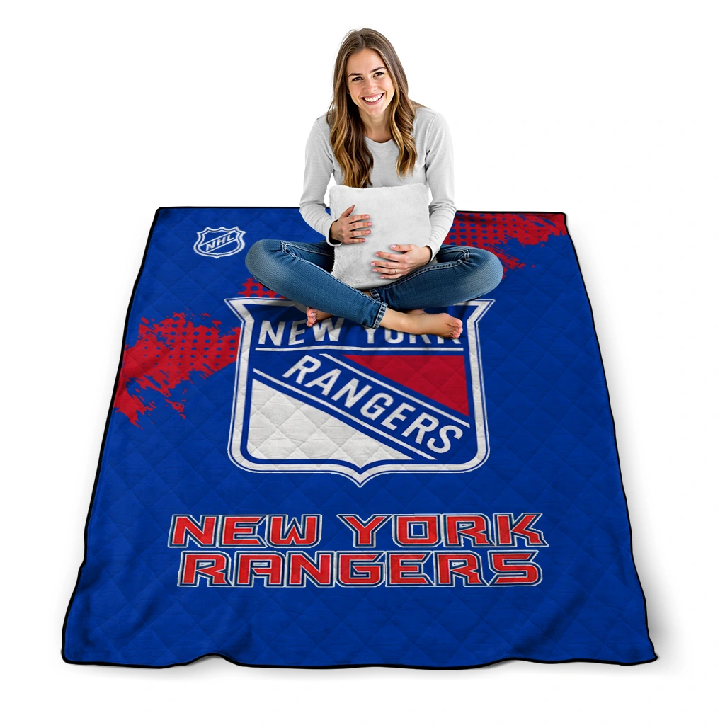 The New York Rangers NHL Shield Blue Quilt Blanket is more than a blanket—it’s everyday comfort, thoughtfully made. Crafted from premium quilting fabric with a soft microfiber touch, it offers a smooth hand-feel and lasting coziness. Layered quilting with a cotton-filled core provides adaptable warmth across seasons while maintaining a clean, tailored look on your bed or sofa.