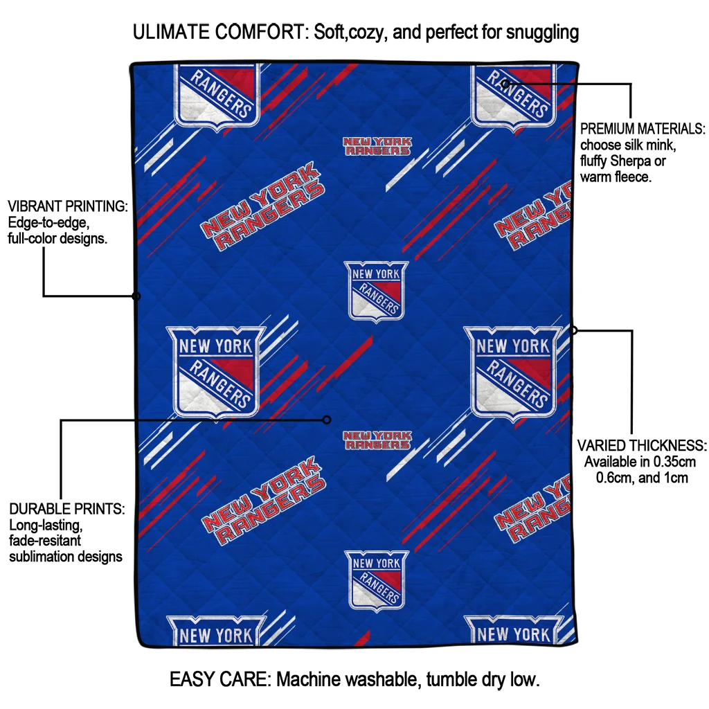 The New York Rangers Sketch Lines Blue Quilt Blanket is more than a blanket—it’s everyday comfort, thoughtfully made. Crafted from premium quilting fabric with a soft microfiber touch, it offers a smooth hand-feel and lasting coziness. Layered quilting with a cotton-filled core provides adaptable warmth across seasons while maintaining a clean, tailored look on your bed or sofa.