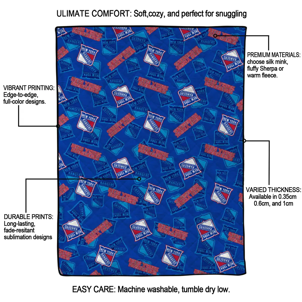 New York Rangers Solid Classic Blue Quilt Blanket