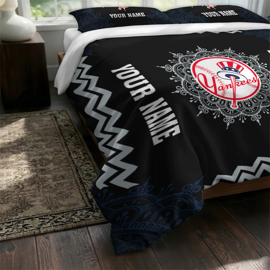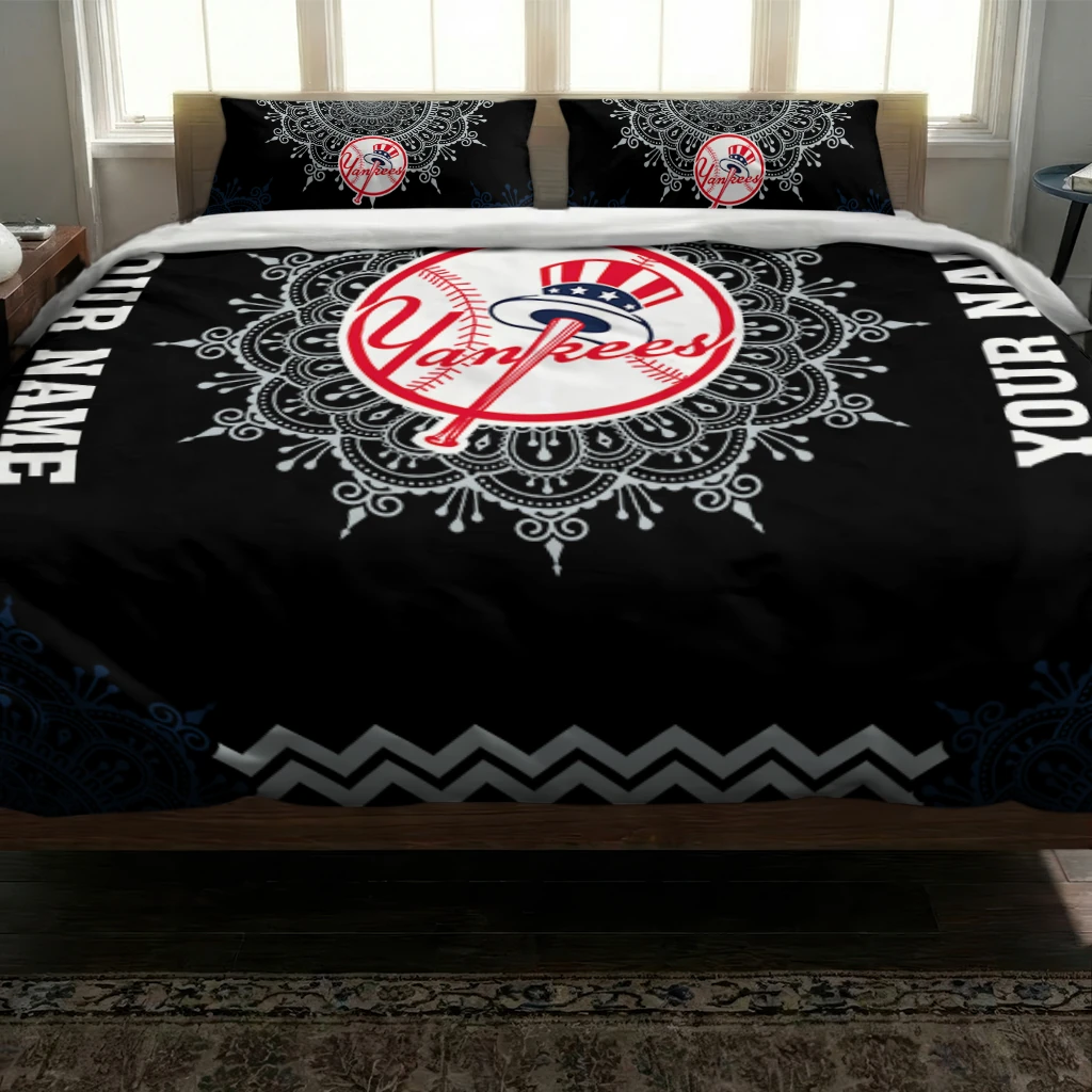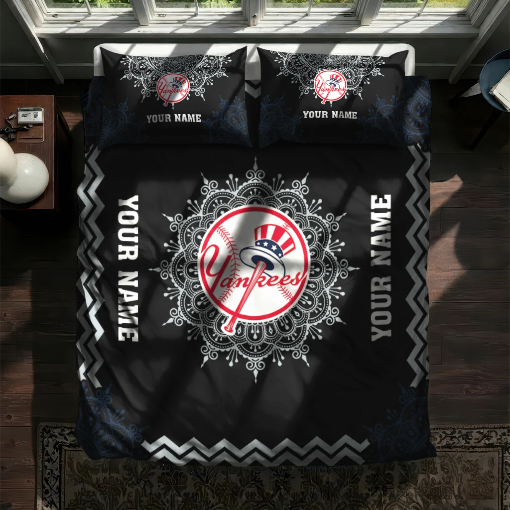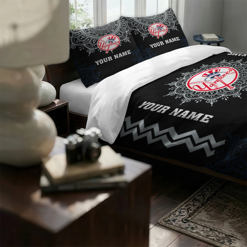 New York Yankees Bedding Set – Personalized Mandala Lacework Black White