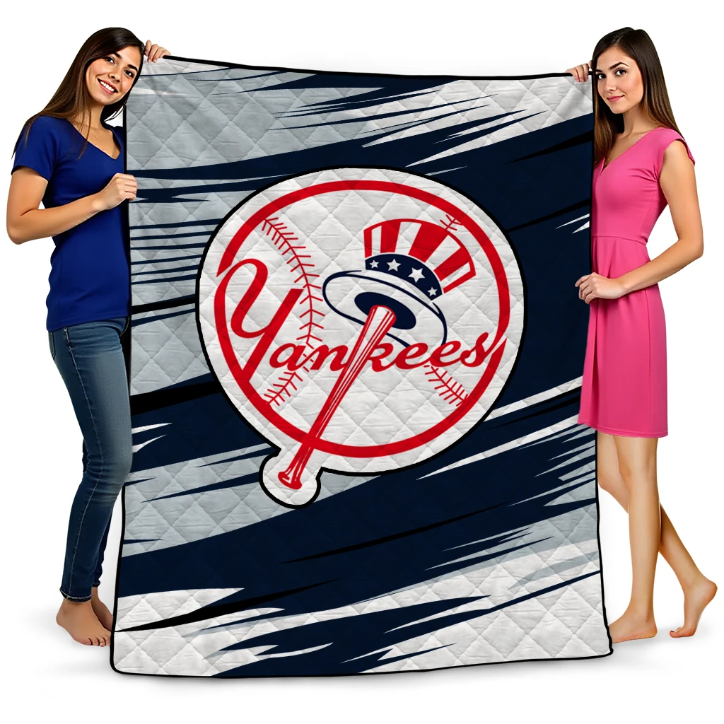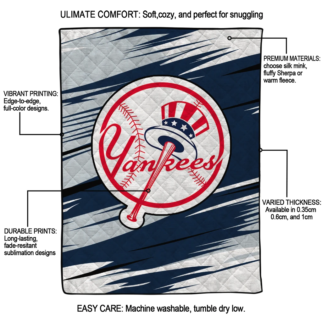 New York Yankees Wild Lines Navy White Quilt Blanket