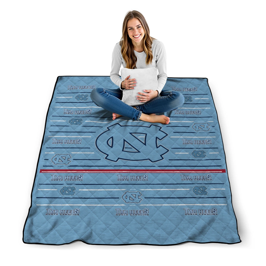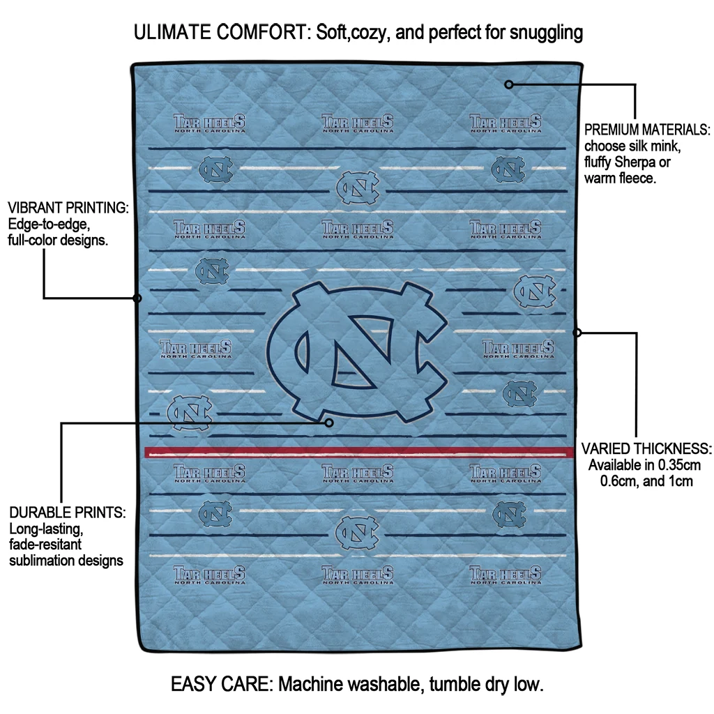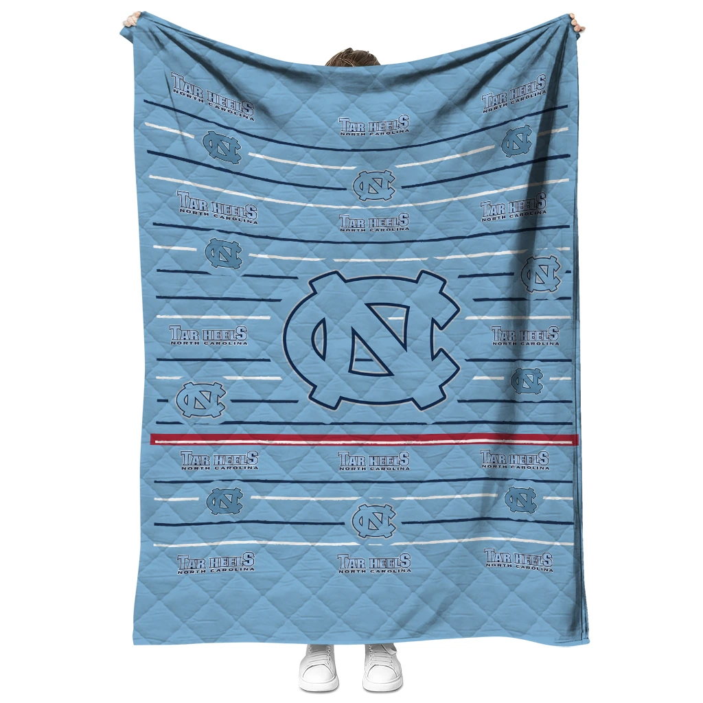 North Carolina Tar Heels Handdrawn Stripes Light Blue Quilt Blanket