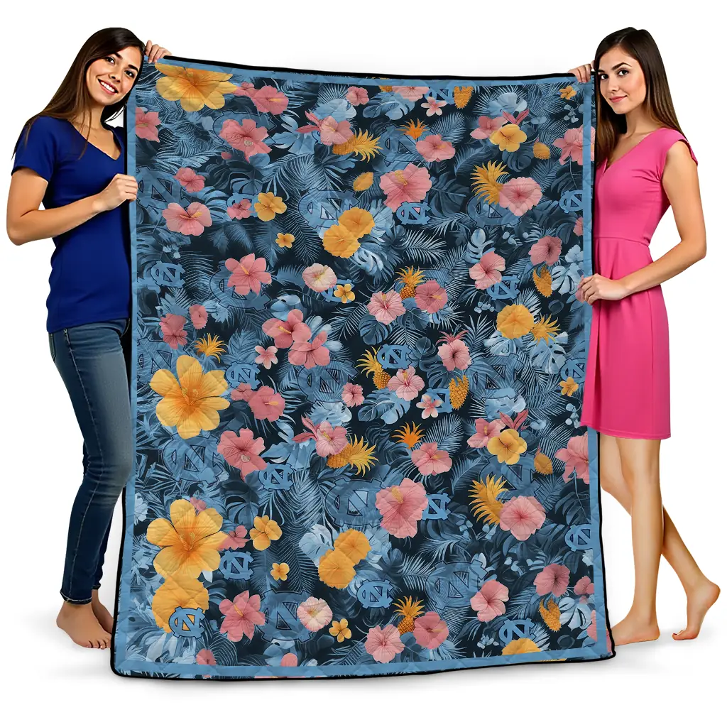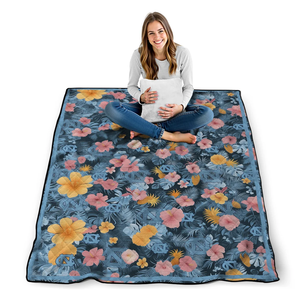 North Carolina Tar Heels Hibiscus Foliage Light Blue Quilt Blanket