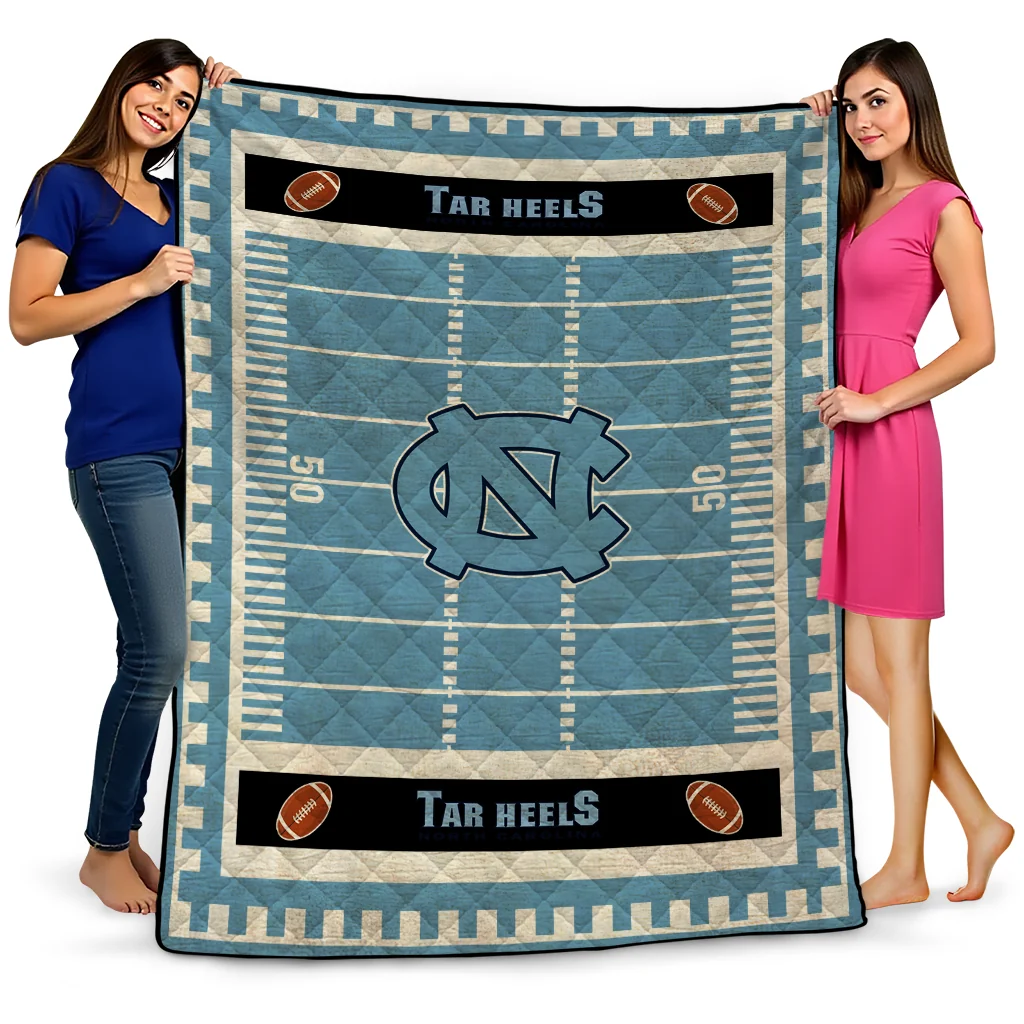 Wrap yourself in warmth and pride with the North Carolina Tar Heels Mickey Player Light Blue Quilt Blanket from the North Carolina Tar Heels Blankets collection at Yes That Blanket. Made from 100% premium quilting-weight polyester blended with a touch of microfiber, this quilt offers a smooth, soft finish you’ll love. Choose between two quilting styles—Stipple or Diagonal—and enjoy the comfort of a cotton-filled layer inside that adds extra coziness for every season. The border is available in classic black or white, giving your design a clean, timeless edge.
