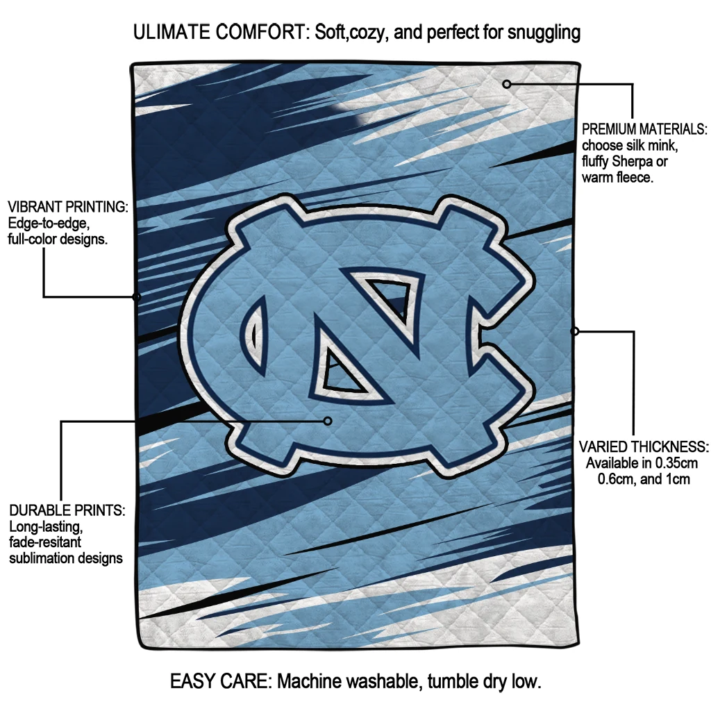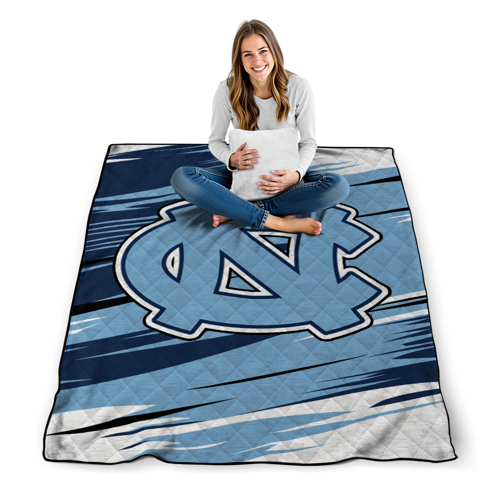 North Carolina Tar Heels Wild Lines Light Blue White Quilt Blanket