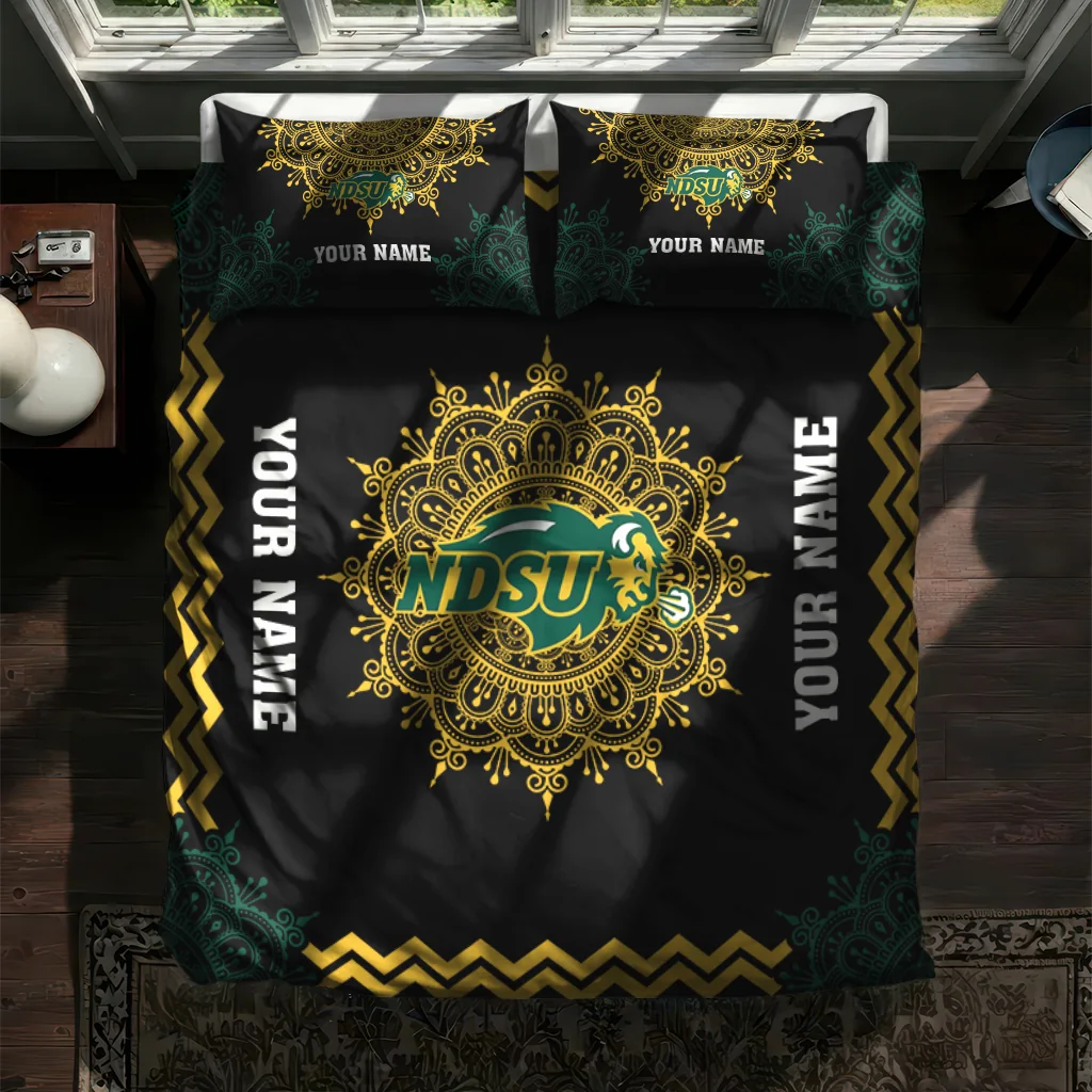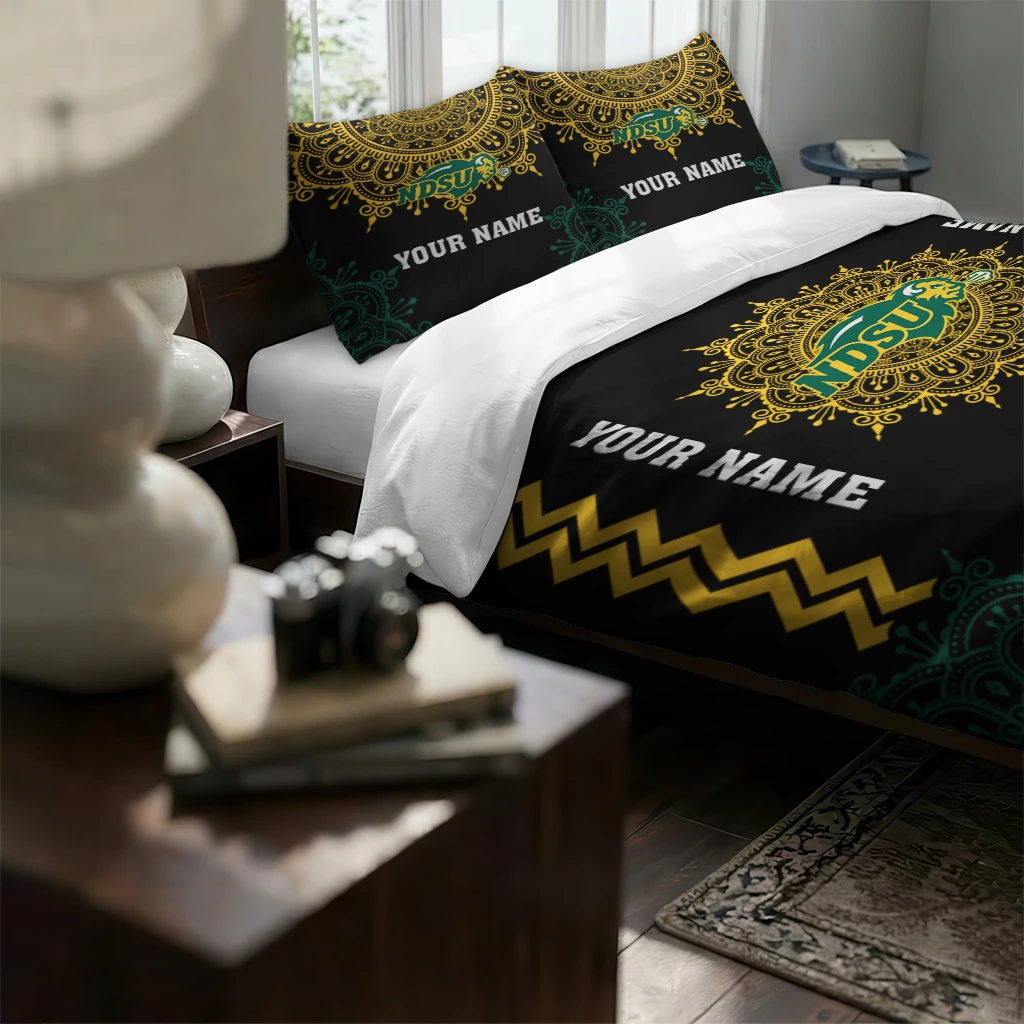 North Dakota State Bison Bedding Set – Customized Mandala Lacework Black Yellow