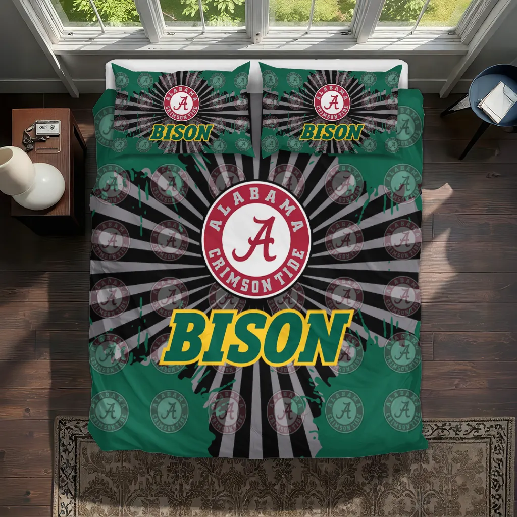 North Dakota State Bison Bedding Set – Sunburst Splatter Green Black