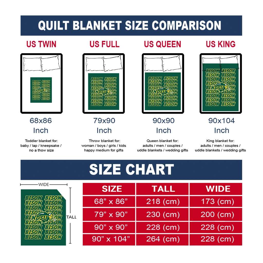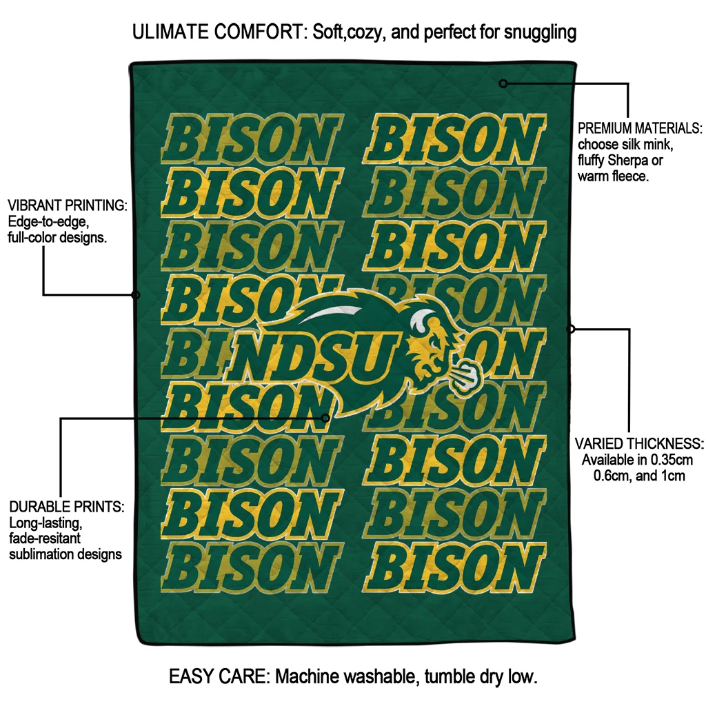Wrap yourself in warmth and pride with the North Dakota State Bison Bold Red Green Quilt Blanket from the North Dakota State Bison Blankets collection at Yes That Blanket. Made from 100% premium quilting-weight polyester blended with a touch of microfiber, this quilt offers a smooth, soft finish you’ll love. Choose between two quilting styles—Stipple or Diagonal—and enjoy the comfort of a cotton-filled layer inside that adds extra coziness for every season. The border is available in classic black or white, giving your design a clean, timeless edge.