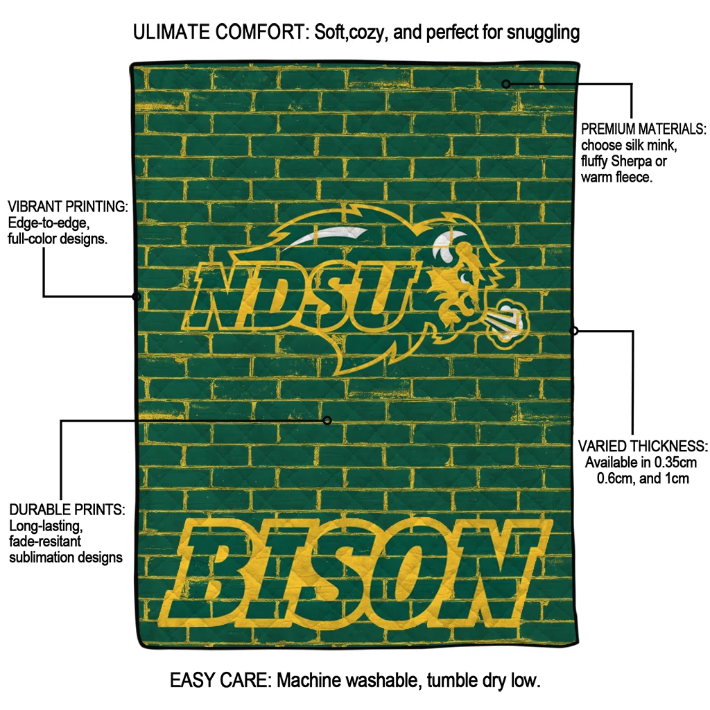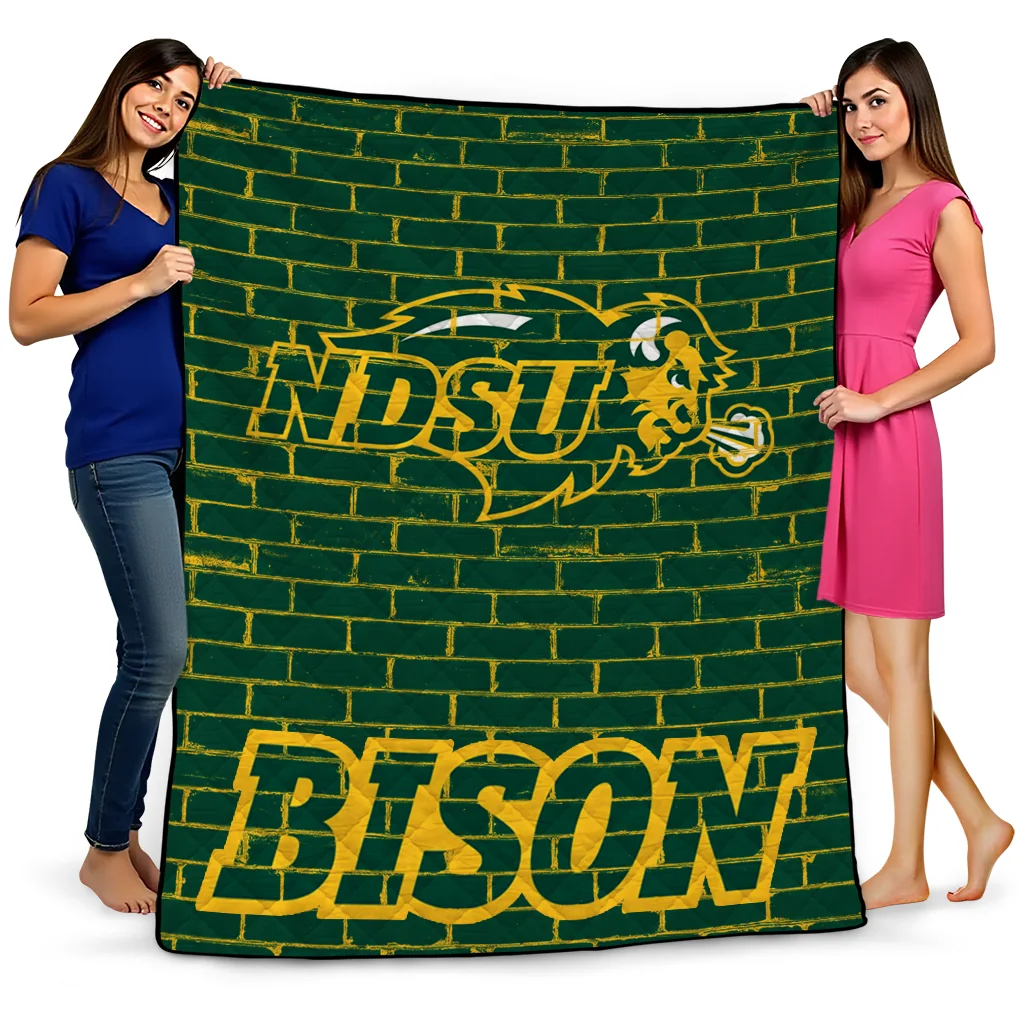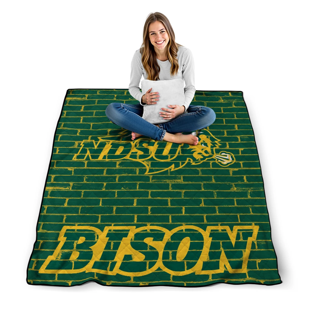 Wrap yourself in warmth and pride with the North Dakota State Bison Brick Grid Green Quilt Blanket from the North Dakota State Bison Blankets collection at Yes That Blanket. Made from 100% premium quilting-weight polyester blended with a touch of microfiber, this quilt offers a smooth, soft finish you’ll love. Choose between two quilting styles—Stipple or Diagonal—and enjoy the comfort of a cotton-filled layer inside that adds extra coziness for every season. The border is available in classic black or white, giving your design a clean, timeless edge.