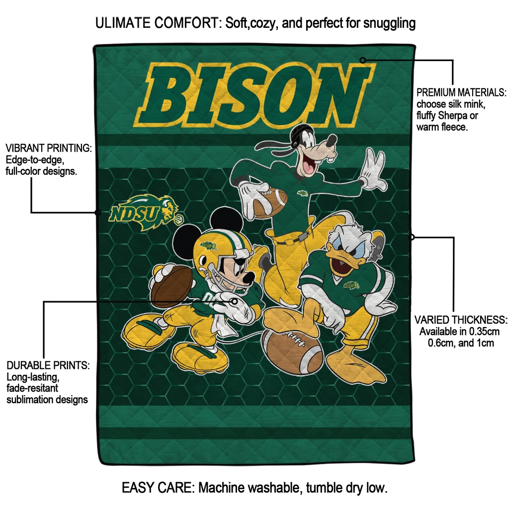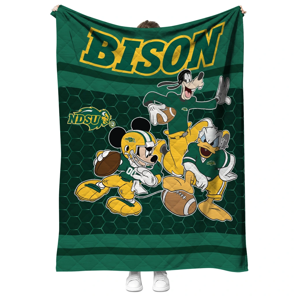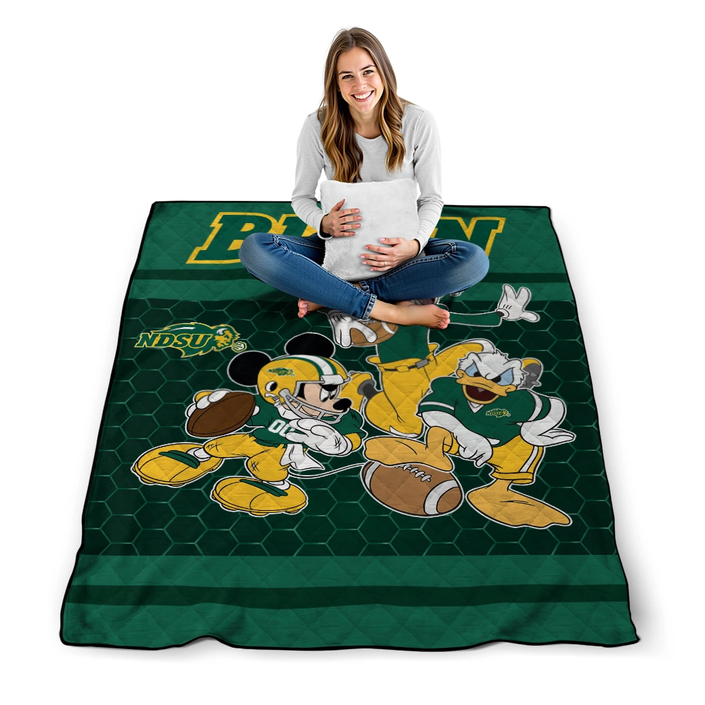 Wrap yourself in warmth and pride with the North Dakota State Bison Disney Football Green Quilt Blanket from the North Dakota State Bison Blankets collection at Yes That Blanket. Made from 100% premium quilting-weight polyester blended with a touch of microfiber, this quilt offers a smooth, soft finish you’ll love. Choose between two quilting styles—Stipple or Diagonal—and enjoy the comfort of a cotton-filled layer inside that adds extra coziness for every season. The border is available in classic black or white, giving your design a clean, timeless edge.