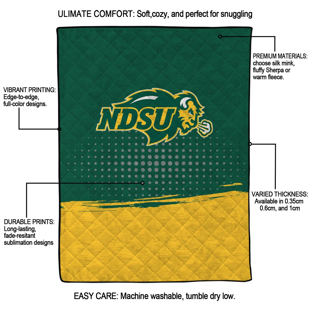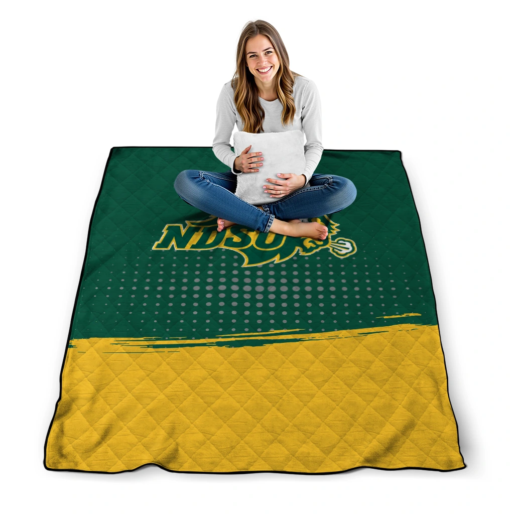 Wrap yourself in warmth and pride with the North Dakota State Bison Dot Illusion Green Quilt Blanket from the North Dakota State Bison Blankets collection at Yes That Blanket. Made from 100% premium quilting-weight polyester blended with a touch of microfiber, this quilt offers a smooth, soft finish you’ll love. Choose between two quilting styles—Stipple or Diagonal—and enjoy the comfort of a cotton-filled layer inside that adds extra coziness for every season. The border is available in classic black or white, giving your design a clean, timeless edge.