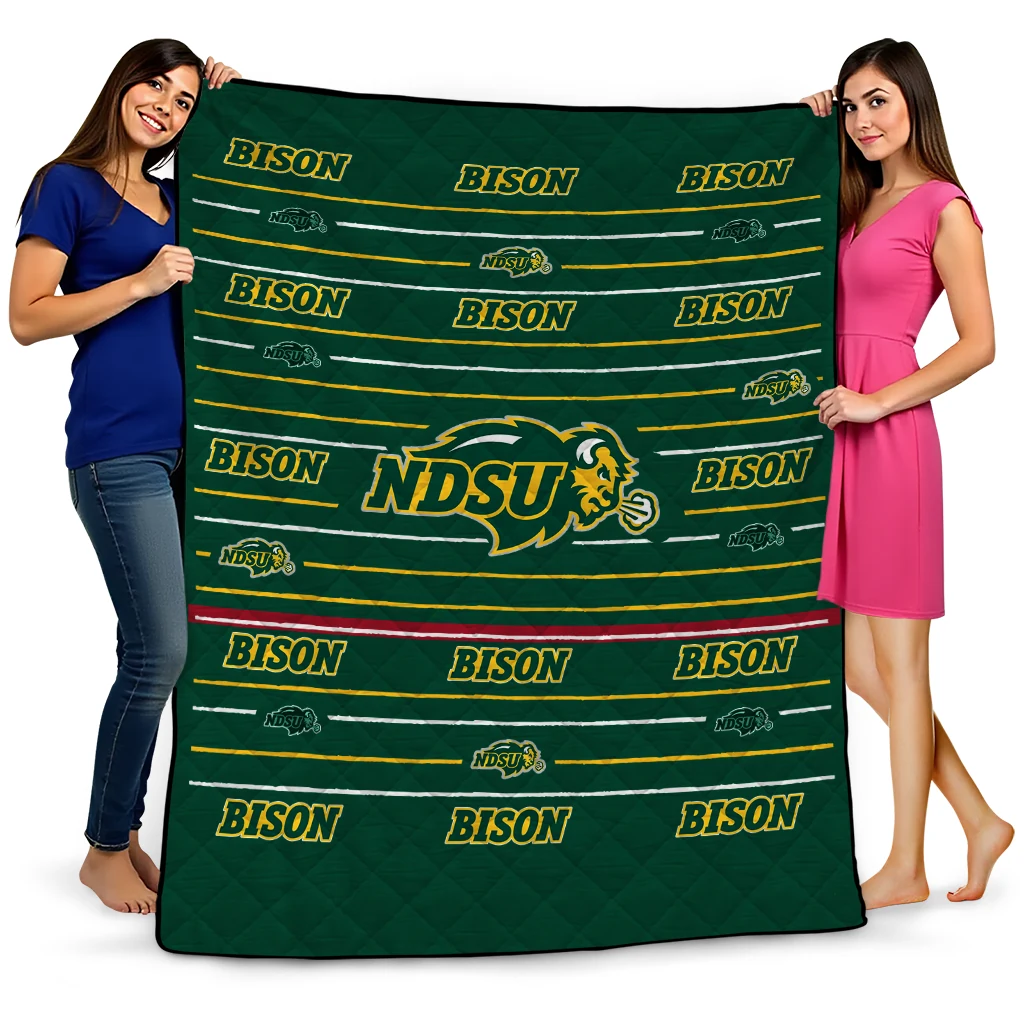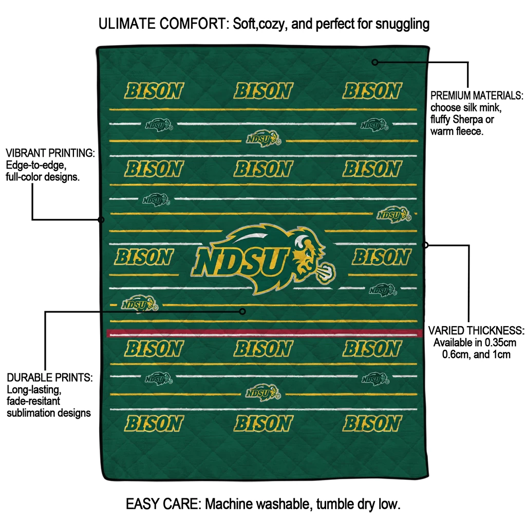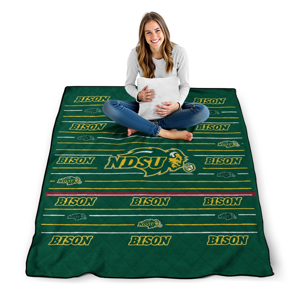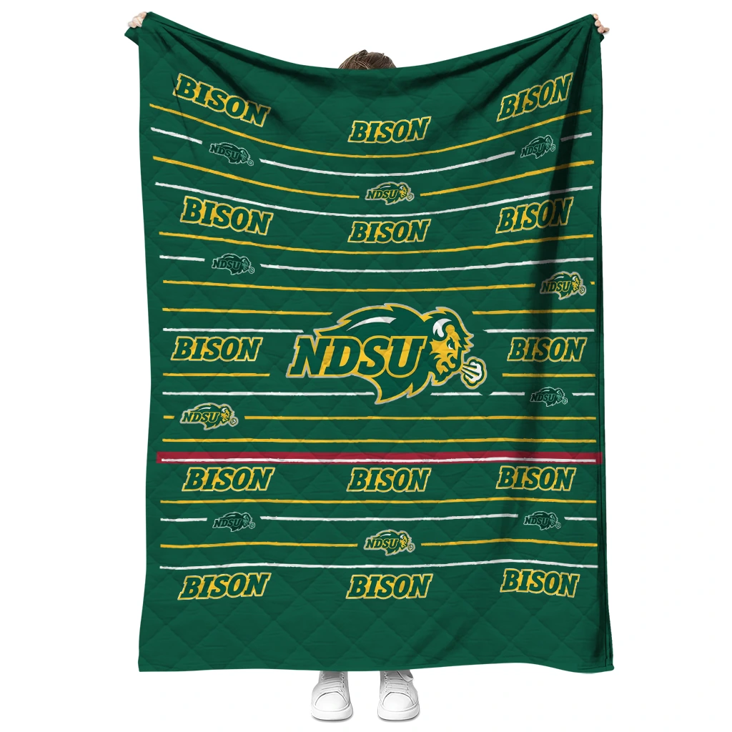 Wrap yourself in warmth and pride with the North Dakota State Bison Handdrawn Stripes Green Quilt Blanket from the North Dakota State Bison Blankets collection at Yes That Blanket. Made from 100% premium quilting-weight polyester blended with a touch of microfiber, this quilt offers a smooth, soft finish you’ll love. Choose between two quilting styles—Stipple or Diagonal—and enjoy the comfort of a cotton-filled layer inside that adds extra coziness for every season. The border is available in classic black or white, giving your design a clean, timeless edge.