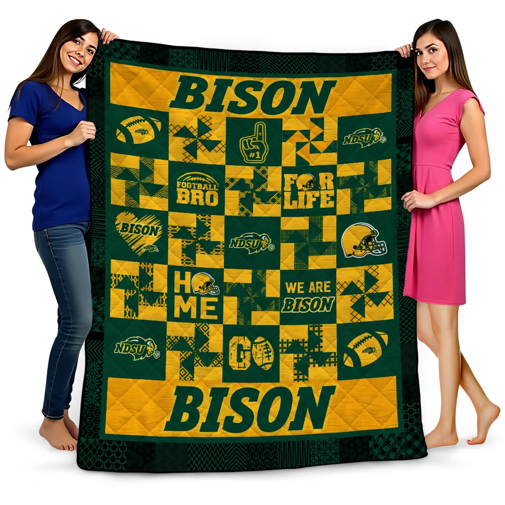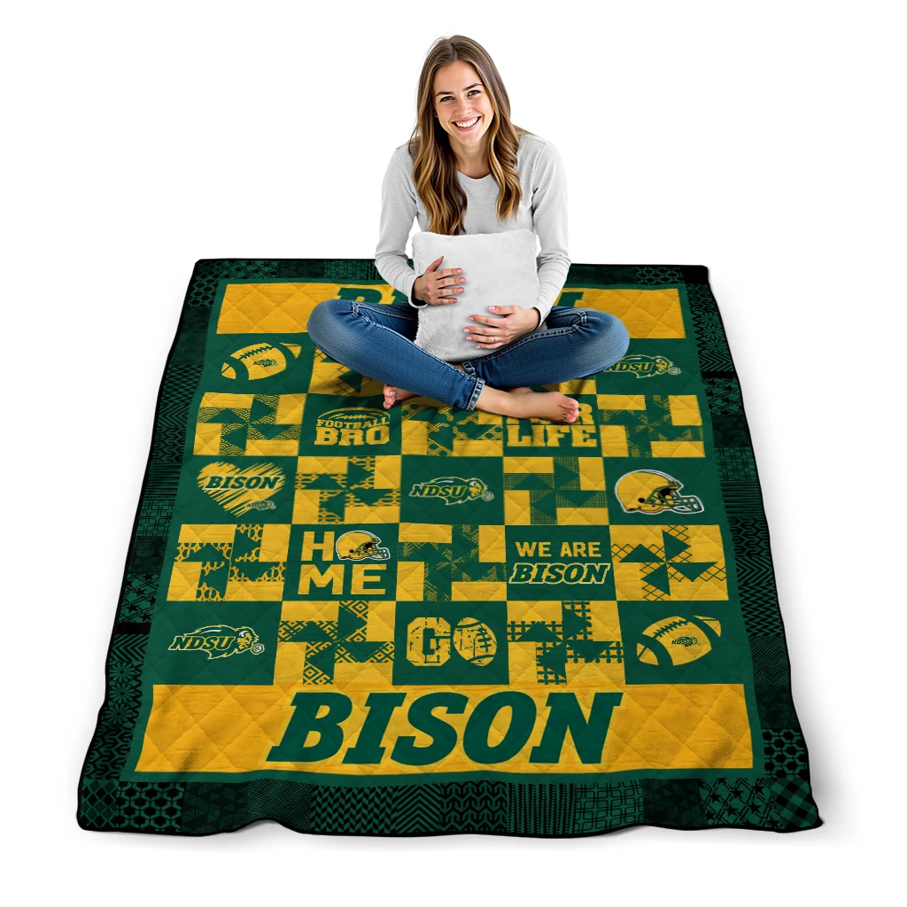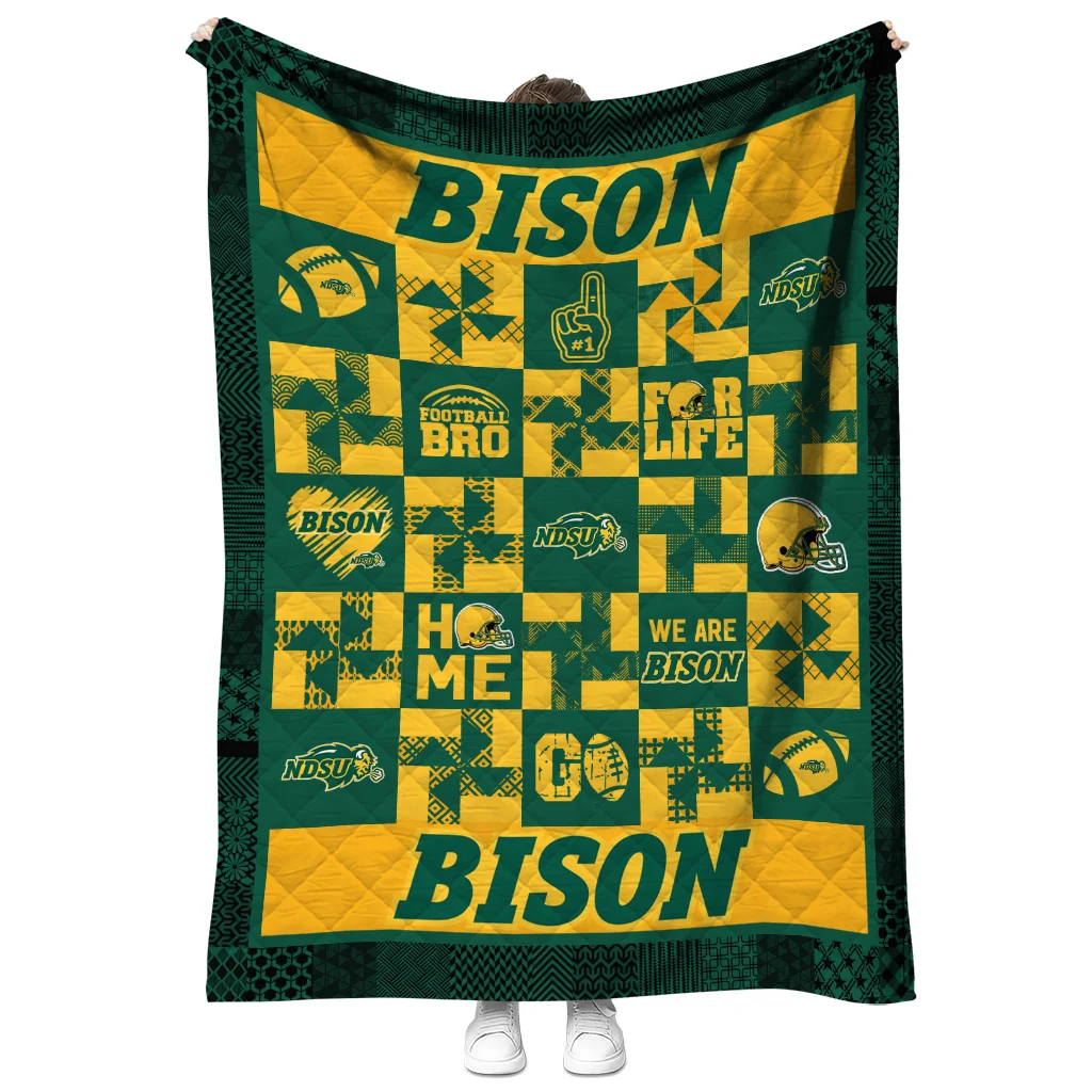 Wrap yourself in warmth and pride with the North Dakota State Bison Helmet Heart Green Quilt Blanket from the North Dakota State Bison Blankets collection at Yes That Blanket. Made from 100% premium quilting-weight polyester blended with a touch of microfiber, this quilt offers a smooth, soft finish you’ll love. Choose between two quilting styles—Stipple or Diagonal—and enjoy the comfort of a cotton-filled layer inside that adds extra coziness for every season. The border is available in classic black or white, giving your design a clean, timeless edge.