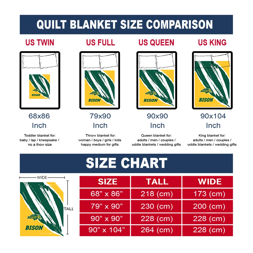 Wrap yourself in warmth and pride with the North Dakota State Bison Stroke Art Green White Quilt Blanket from the North Dakota State Bison Blankets collection at Yes That Blanket. Made from 100% premium quilting-weight polyester blended with a touch of microfiber, this quilt offers a smooth, soft finish you’ll love. Choose between two quilting styles—Stipple or Diagonal—and enjoy the comfort of a cotton-filled layer inside that adds extra coziness for every season. The border is available in classic black or white, giving your design a clean, timeless edge.