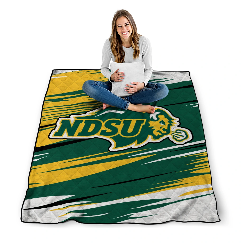 The North Dakota State Bison Wild Lines Green White Quilt Blanket is more than a blanket—it’s everyday comfort, thoughtfully made. Crafted from premium quilting fabric with a soft microfiber touch, it offers a smooth hand-feel and lasting coziness. Layered quilting with a cotton-filled core provides adaptable warmth across seasons while maintaining a clean, tailored look on your bed or sofa.