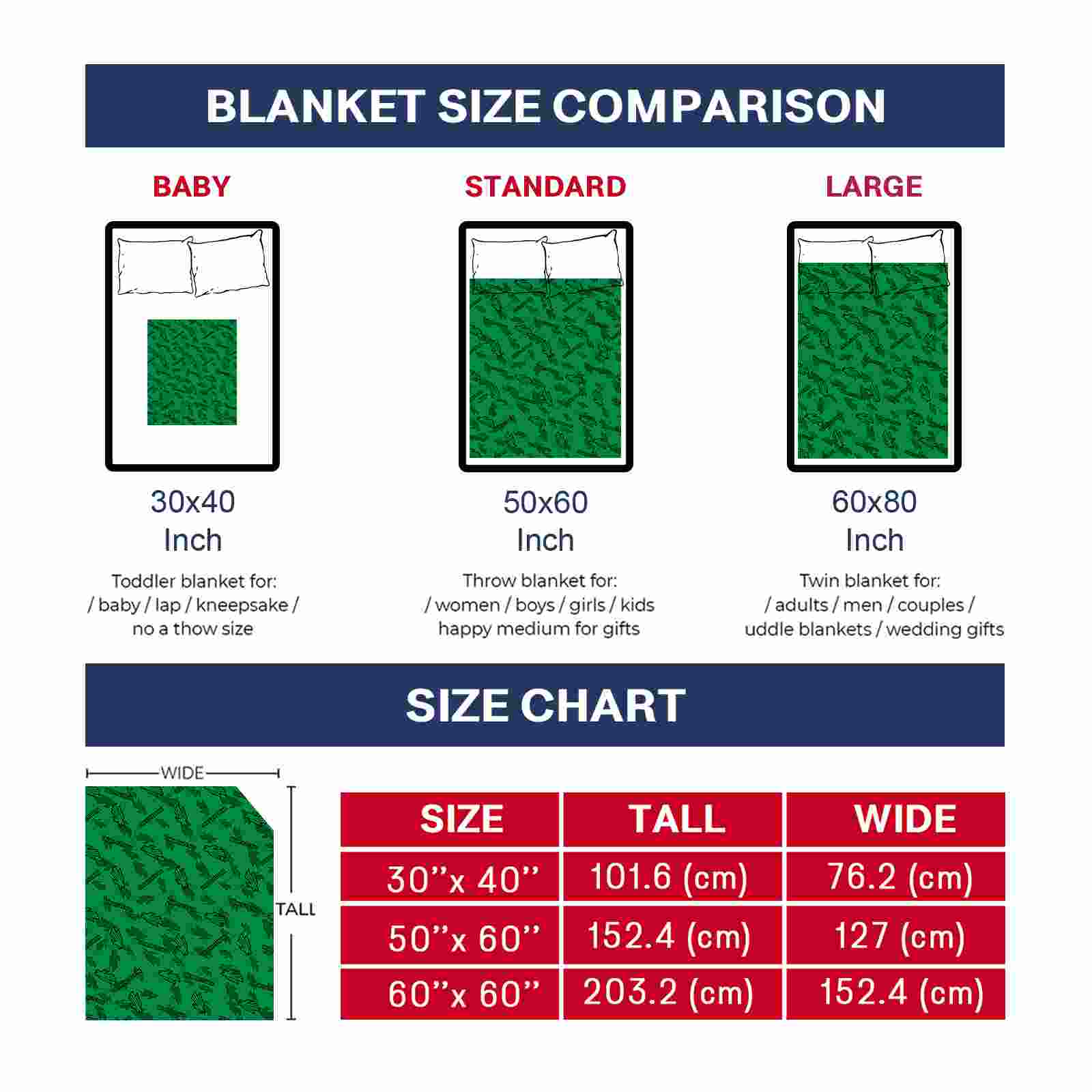 Still, wait, there’s more! Available in three options to suit every fan, we offer varying thickness and feel, from the soft 0.6 cm fleece to the lightweight 0.35 cm and the luxurious 1 cm mink sherpa. Extra point: To maintain its nice look and softness, take it easy! Just simply machine wash it separately in cold water and tumble dry on low, avoiding heat pressing, ironing, or dry cleaning!