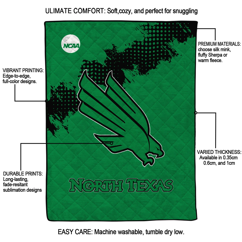 The North Texas Mean Green Paint Trail Green Quilt Blanket is more than a blanket—it’s everyday comfort, thoughtfully made. Crafted from premium quilting fabric with a soft microfiber touch, it offers a smooth hand-feel and lasting coziness. Layered quilting with a cotton-filled core provides adaptable warmth across seasons while maintaining a clean, tailored look on your bed or sofa.