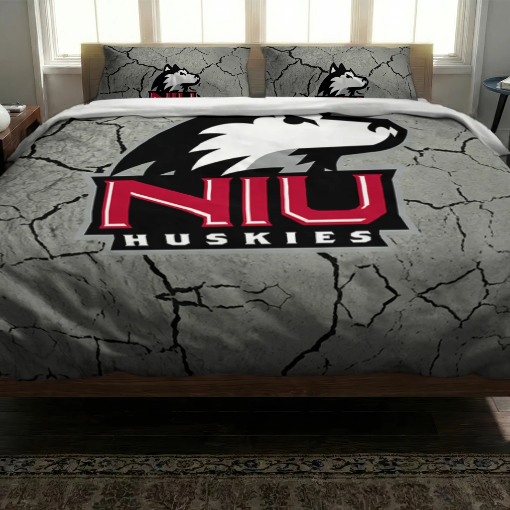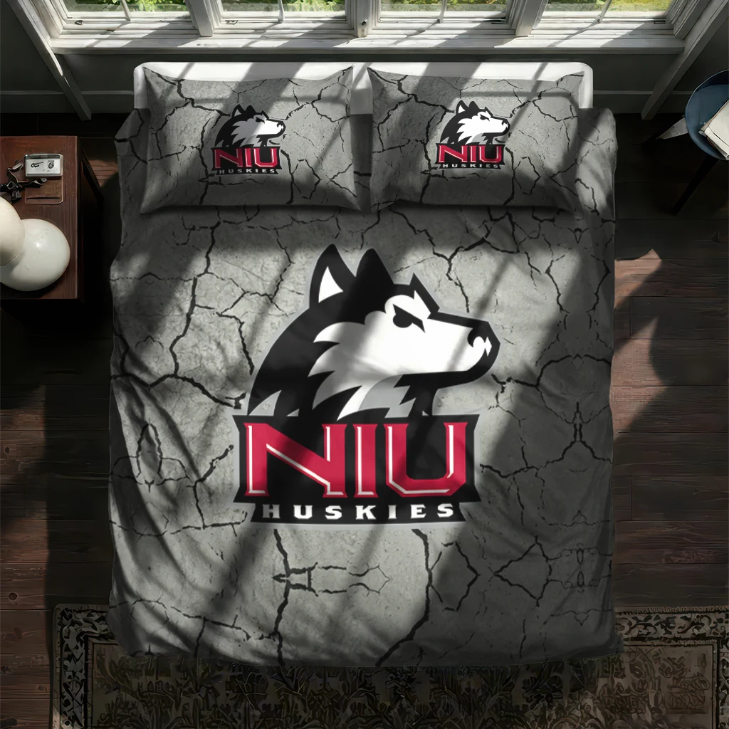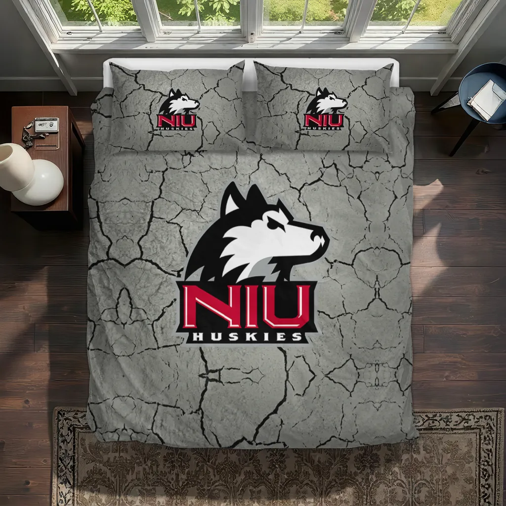 Northern Illinois Huskies Bedding Set – Cracked Texture Gray Black