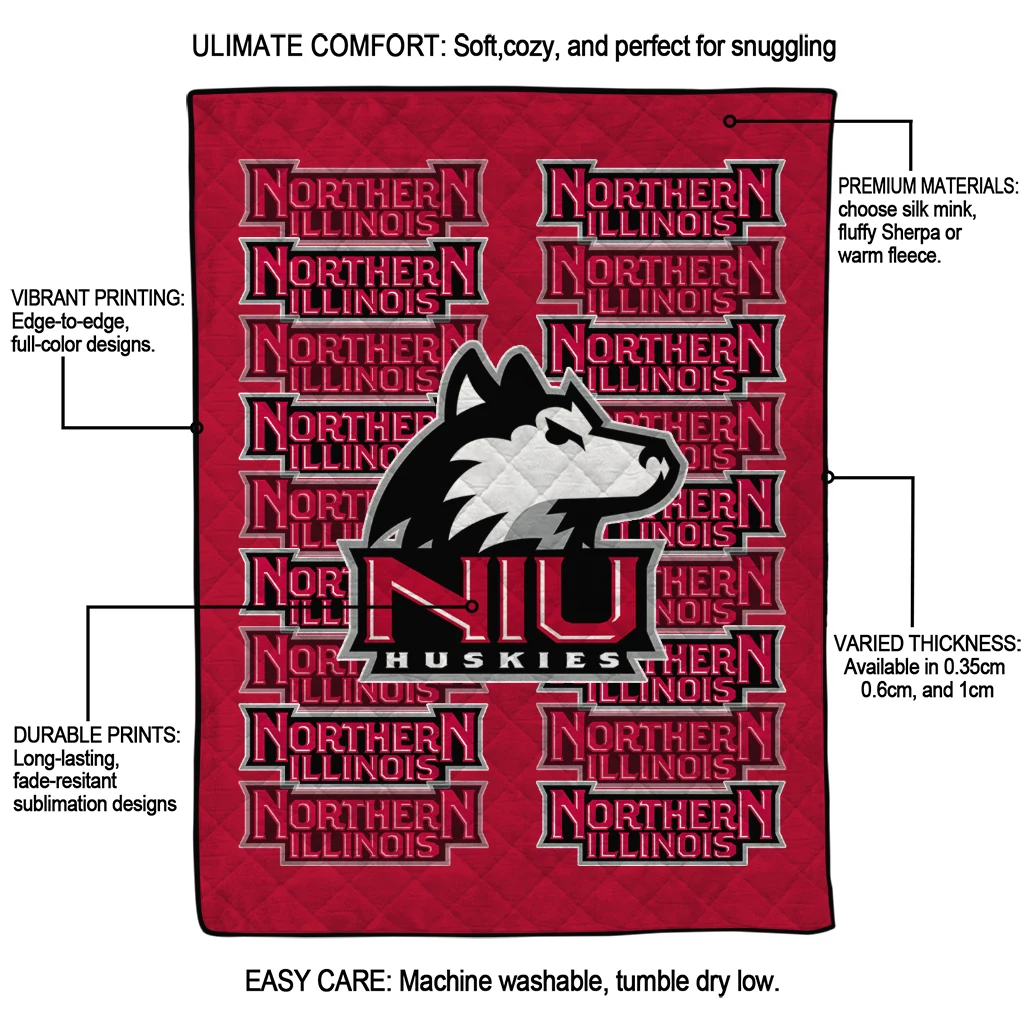 Wrap yourself in warmth and pride with the Northern Illinois Huskies Bold Red Quilt Blanket from the Northern Illinois Huskies Blankets collection at Yes That Blanket. Made from 100% premium quilting-weight polyester blended with a touch of microfiber, this quilt offers a smooth, soft finish you’ll love. Choose between two quilting styles—Stipple or Diagonal—and enjoy the comfort of a cotton-filled layer inside that adds extra coziness for every season. The border is available in classic black or white, giving your design a clean, timeless edge.
