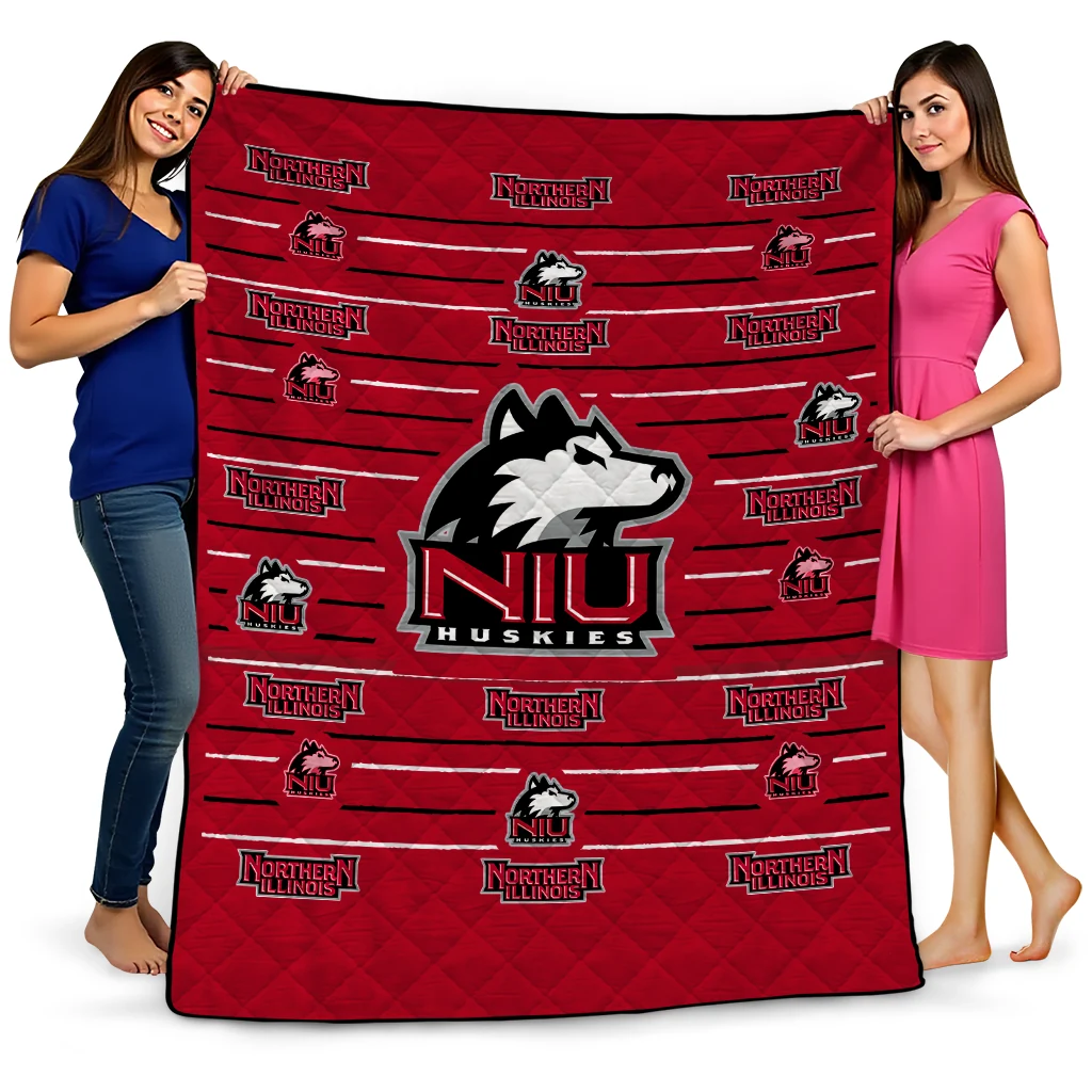 Wrap yourself in warmth and pride with the Northern Illinois Huskies Handdrawn Stripes Red Quilt Blanket from the Northern Illinois Huskies Blankets collection at Yes That Blanket. Made from 100% premium quilting-weight polyester blended with a touch of microfiber, this quilt offers a smooth, soft finish you’ll love. Choose between two quilting styles—Stipple or Diagonal—and enjoy the comfort of a cotton-filled layer inside that adds extra coziness for every season. The border is available in classic black or white, giving your design a clean, timeless edge.