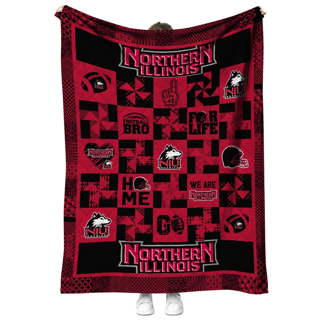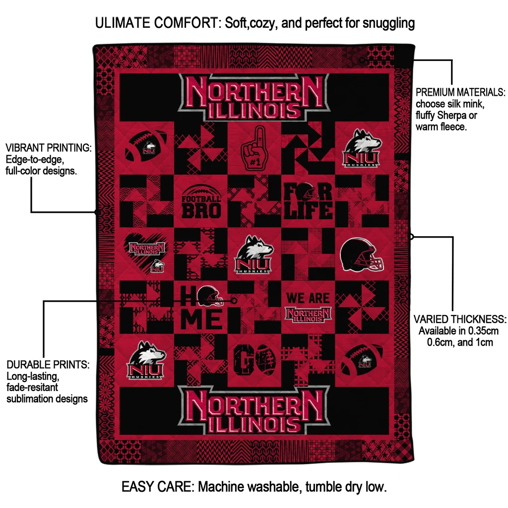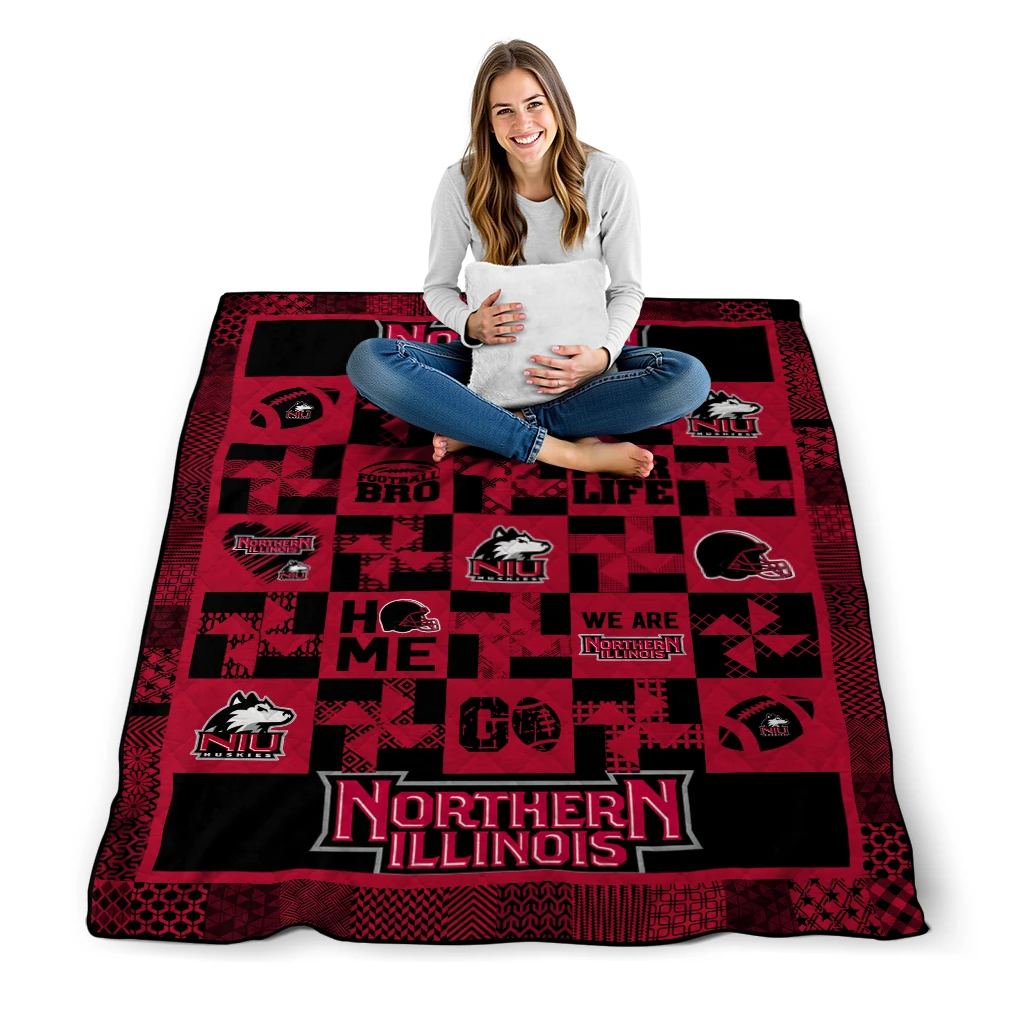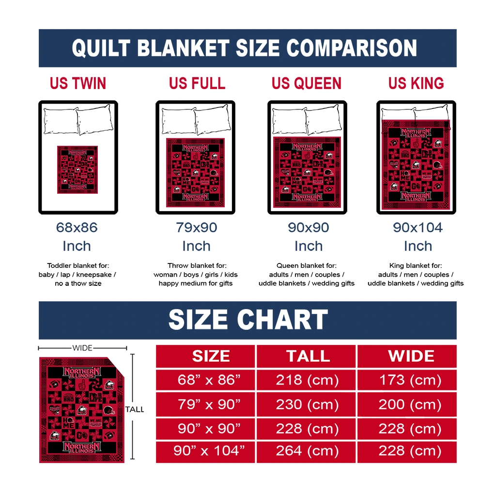 Wrap yourself in warmth and pride with the Northern Illinois Huskies Helmet Heart Red Quilt Blanket from the Northern Illinois Huskies Blankets collection at Yes That Blanket. Made from 100% premium quilting-weight polyester blended with a touch of microfiber, this quilt offers a smooth, soft finish you’ll love. Choose between two quilting styles—Stipple or Diagonal—and enjoy the comfort of a cotton-filled layer inside that adds extra coziness for every season. The border is available in classic black or white, giving your design a clean, timeless edge.
