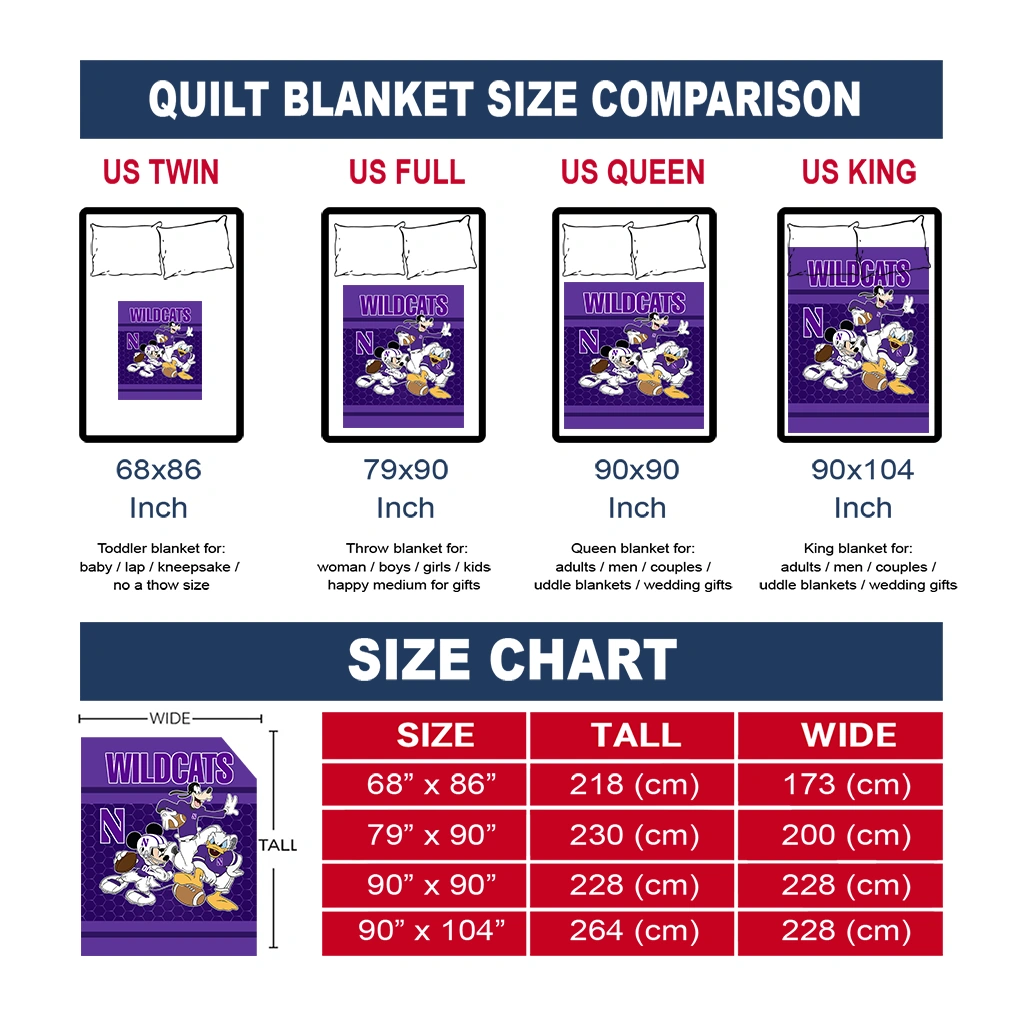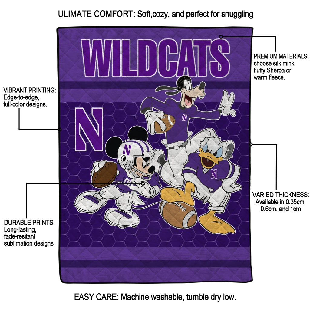 Northwestern Wildcats Disney Football Purple Quilt Blanket