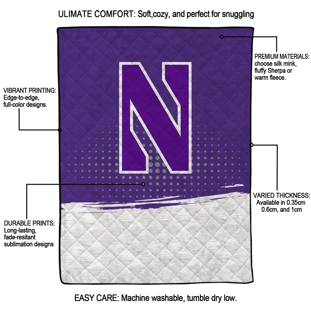 Wrap yourself in warmth and pride with the Northwestern Wildcats Dot Illusion Purple Quilt Blanket from the Northwestern Wildcats Blankets collection at Yes That Blanket. Made from 100% premium quilting-weight polyester blended with a touch of microfiber, this quilt offers a smooth, soft finish you’ll love. Choose between two quilting styles—Stipple or Diagonal—and enjoy the comfort of a cotton-filled layer inside that adds extra coziness for every season. The border is available in classic black or white, giving your design a clean, timeless edge.