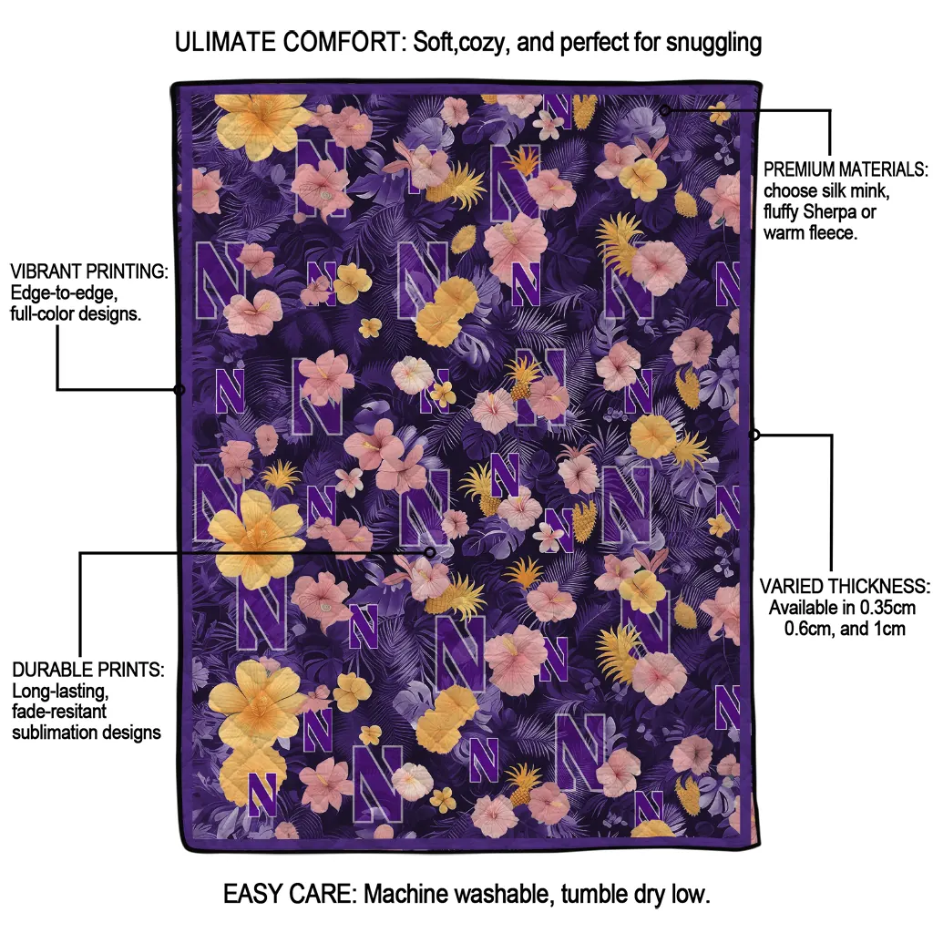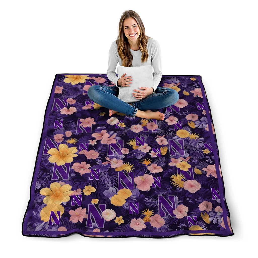 Wrap yourself in warmth and pride with the Northwestern Wildcats Hibiscus Foliage Purple Quilt Blanket from the Northwestern Wildcats Blankets collection at Yes That Blanket. Made from 100% premium quilting-weight polyester blended with a touch of microfiber, this quilt offers a smooth, soft finish you’ll love. Choose between two quilting styles—Stipple or Diagonal—and enjoy the comfort of a cotton-filled layer inside that adds extra coziness for every season. The border is available in classic black or white, giving your design a clean, timeless edge.