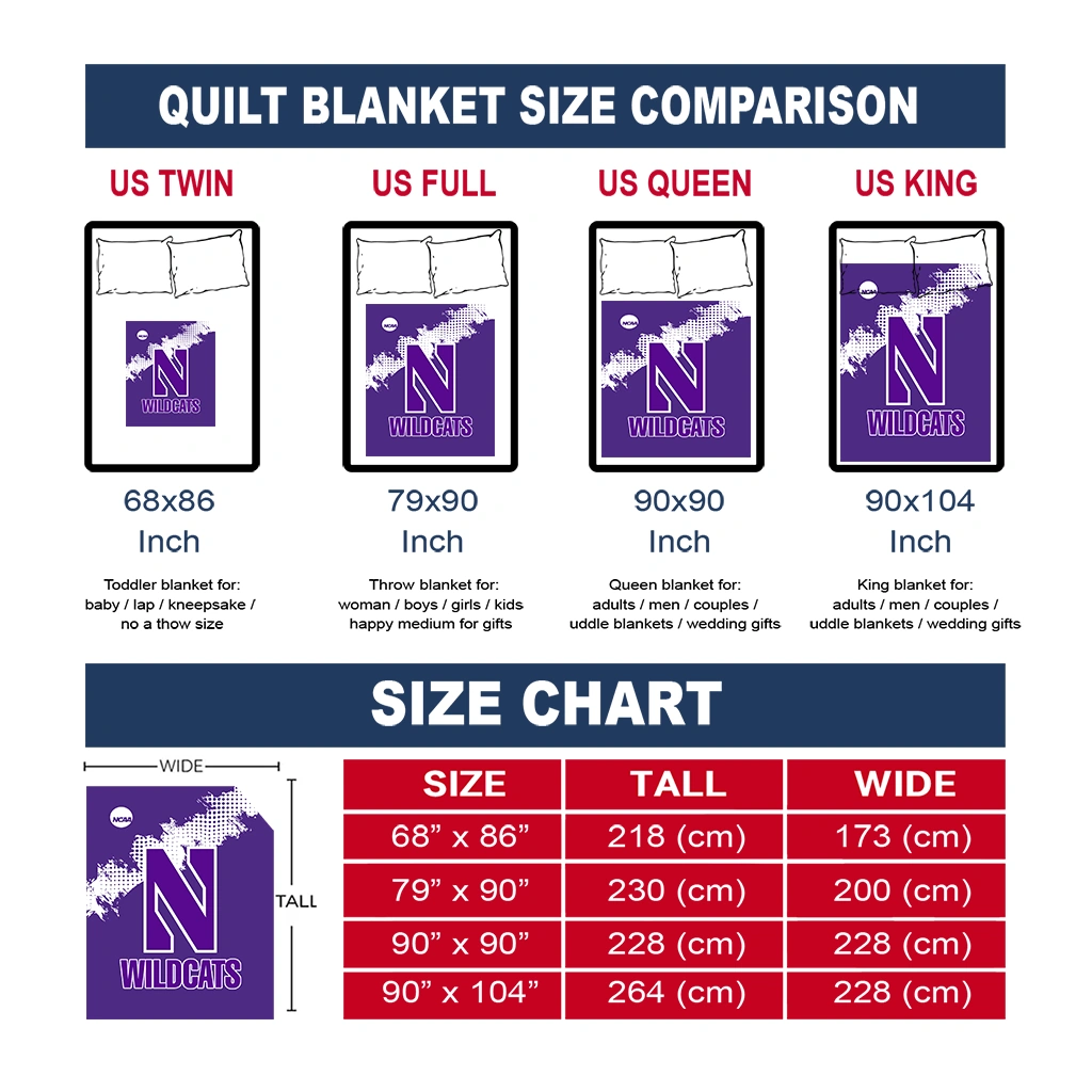 Wrap yourself in warmth and pride with the Northwestern Wildcats Paint Trail Purple Quilt Blanket from the Northwestern Wildcats Blankets collection at Yes That Blanket. Made from 100% premium quilting-weight polyester blended with a touch of microfiber, this quilt offers a smooth, soft finish you’ll love. Choose between two quilting styles—Stipple or Diagonal—and enjoy the comfort of a cotton-filled layer inside that adds extra coziness for every season. The border is available in classic black or white, giving your design a clean, timeless edge.