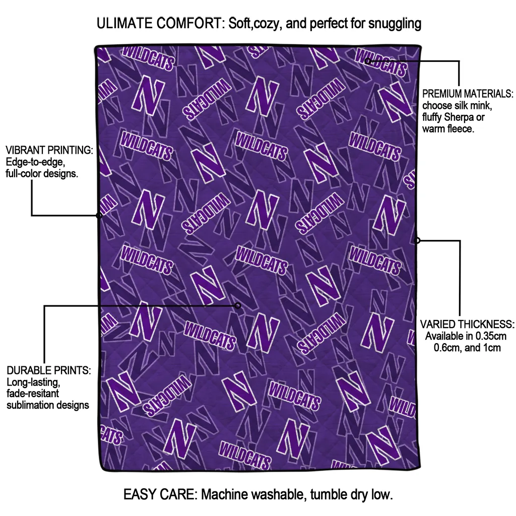 Wrap yourself in warmth and pride with the Northwestern Wildcats Solid Classic Purple Quilt Blanket from the Northwestern Wildcats Blankets collection at Yes That Blanket. Made from 100% premium quilting-weight polyester blended with a touch of microfiber, this quilt offers a smooth, soft finish you’ll love. Choose between two quilting styles—Stipple or Diagonal—and enjoy the comfort of a cotton-filled layer inside that adds extra coziness for every season. The border is available in classic black or white, giving your design a clean, timeless edge.