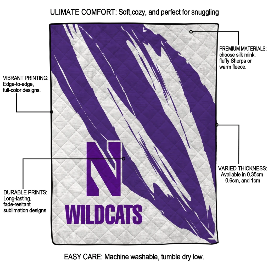 Wrap yourself in warmth and pride with the Northwestern Wildcats Stroke Art Purple White Quilt Blanket from the Northwestern Wildcats Blankets collection at Yes That Blanket. Made from 100% premium quilting-weight polyester blended with a touch of microfiber, this quilt offers a smooth, soft finish you’ll love. Choose between two quilting styles—Stipple or Diagonal—and enjoy the comfort of a cotton-filled layer inside that adds extra coziness for every season. The border is available in classic black or white, giving your design a clean, timeless edge.