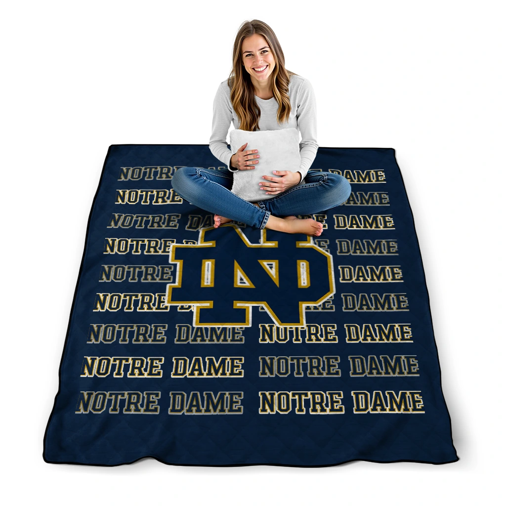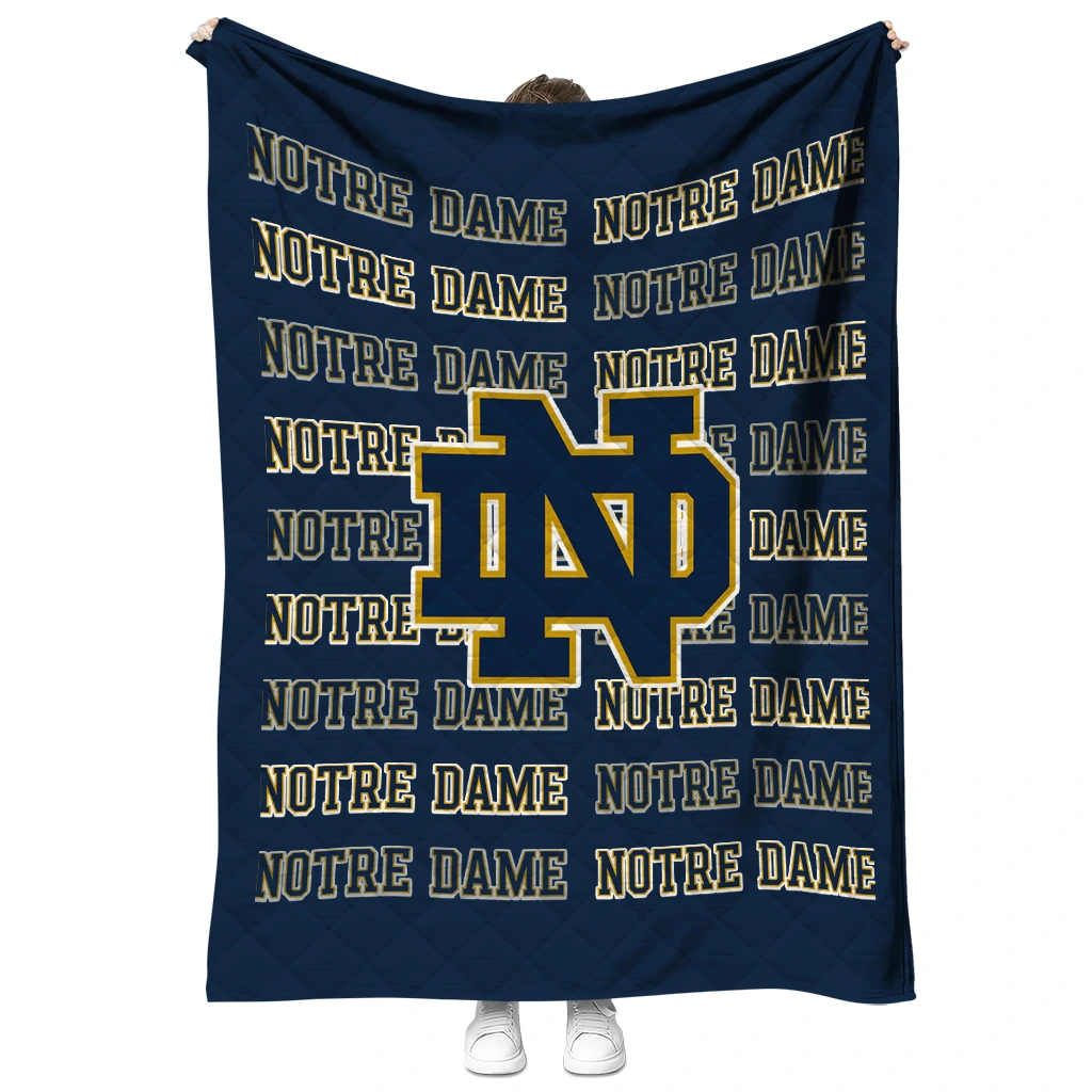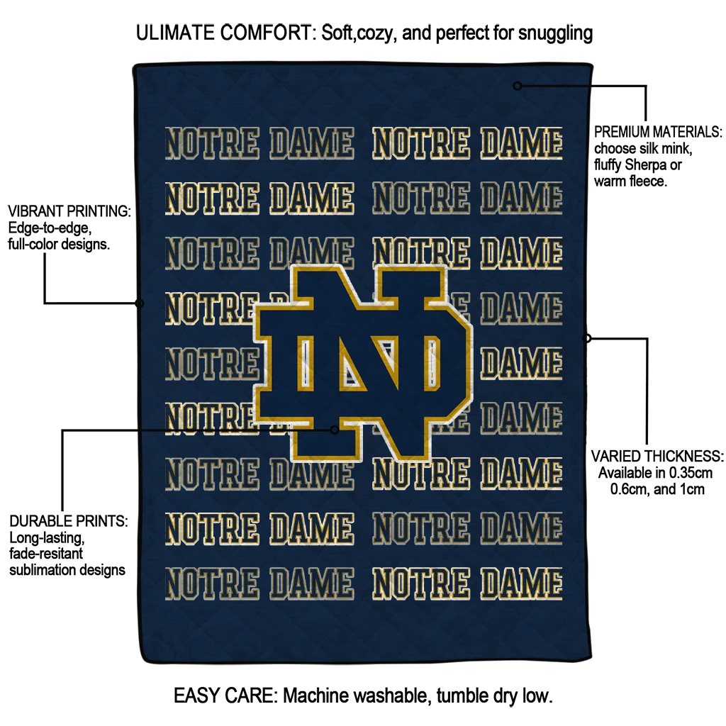 Wrap yourself in warmth and pride with the Notre Dame Fighting Irish Bold Red Navy Quilt Blanket from the Notre Dame Fighting Irish Blankets collection at Yes That Blanket. Made from 100% premium quilting-weight polyester blended with a touch of microfiber, this quilt offers a smooth, soft finish you’ll love. Choose between two quilting styles—Stipple or Diagonal—and enjoy the comfort of a cotton-filled layer inside that adds extra coziness for every season. The border is available in classic black or white, giving your design a clean, timeless edge.