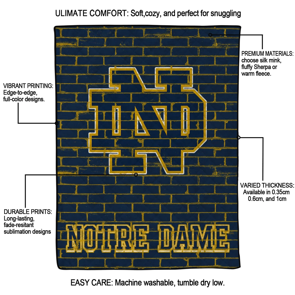 Notre Dame Fighting Irish Brick Grid Navy Quilt Blanket