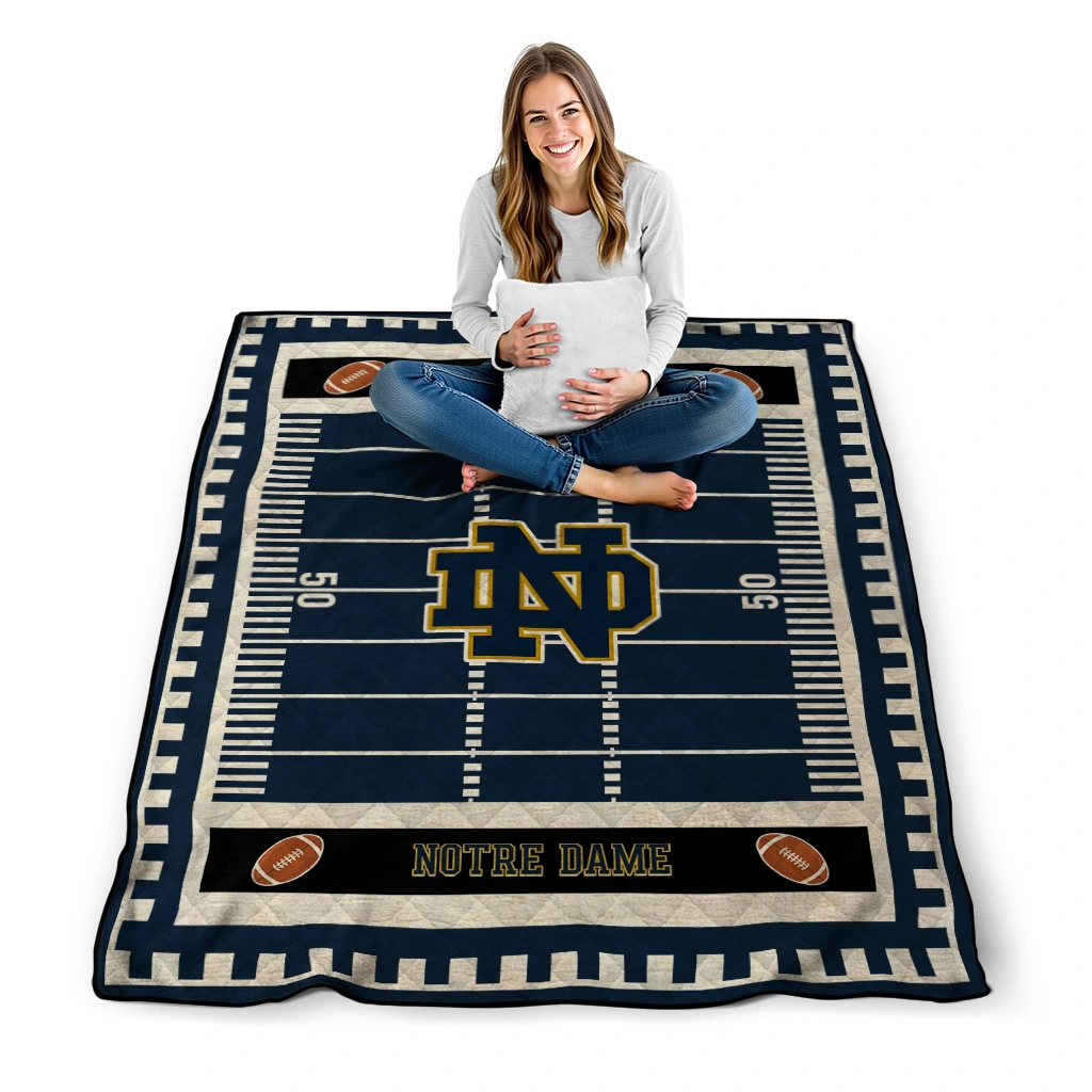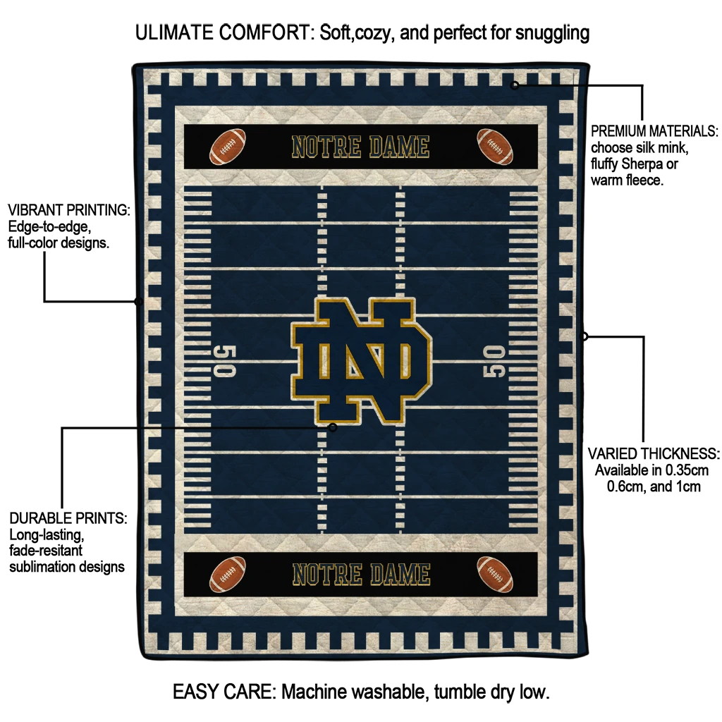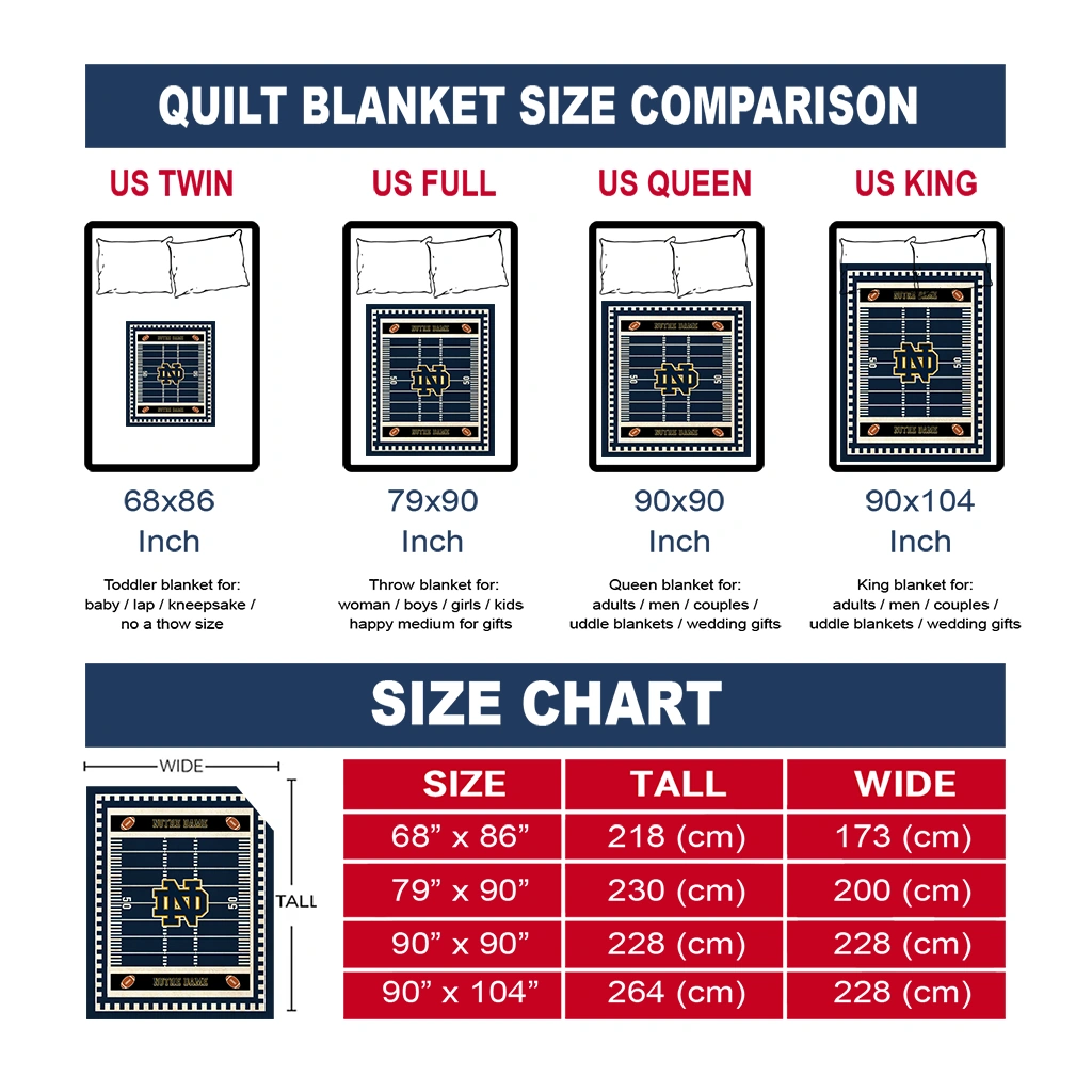 Wrap yourself in warmth and pride with the Notre Dame Fighting Irish Mickey Player Navy Quilt Blanket from the Notre Dame Fighting Irish Blankets collection at Yes That Blanket. Made from 100% premium quilting-weight polyester blended with a touch of microfiber, this quilt offers a smooth, soft finish you’ll love. Choose between two quilting styles—Stipple or Diagonal—and enjoy the comfort of a cotton-filled layer inside that adds extra coziness for every season. The border is available in classic black or white, giving your design a clean, timeless edge.