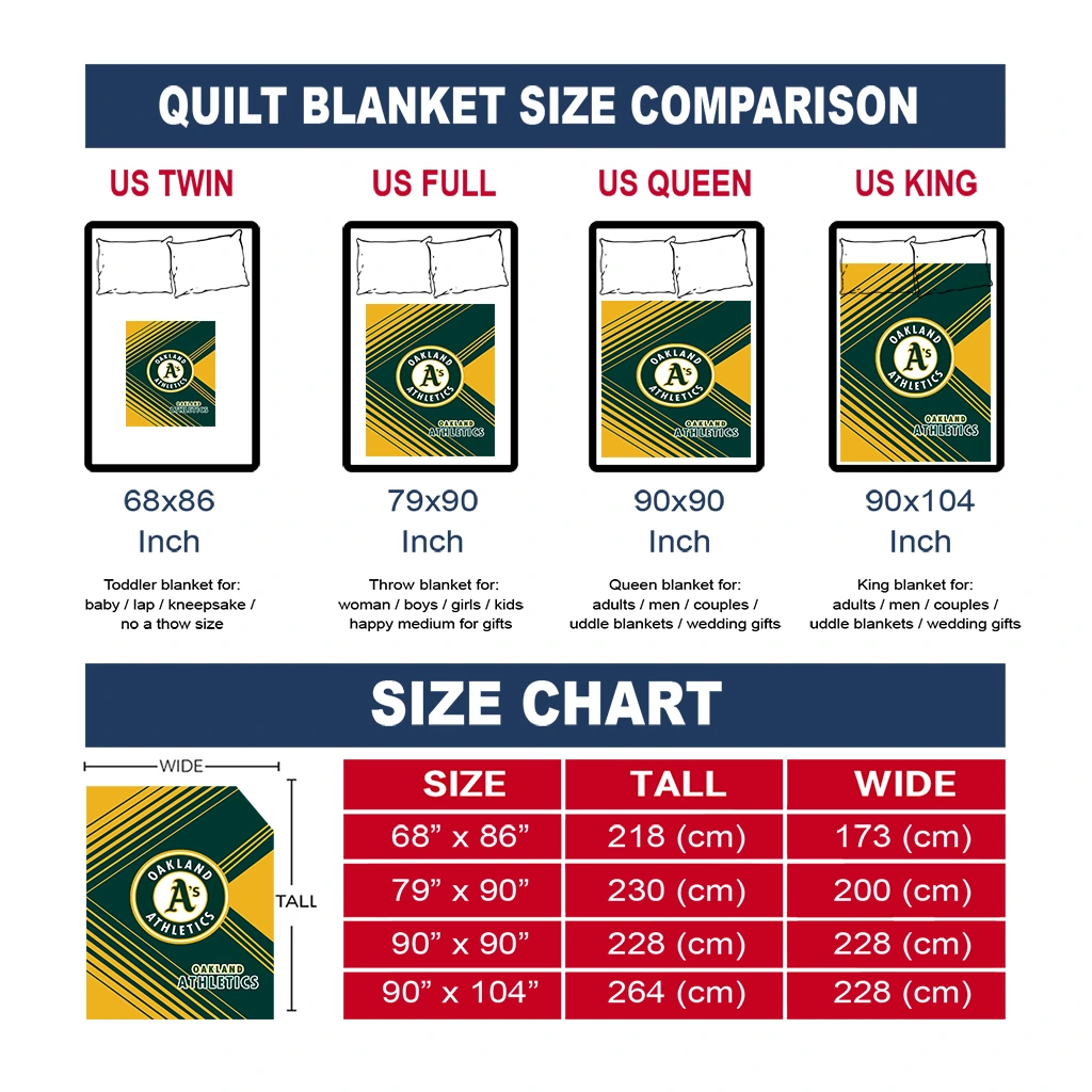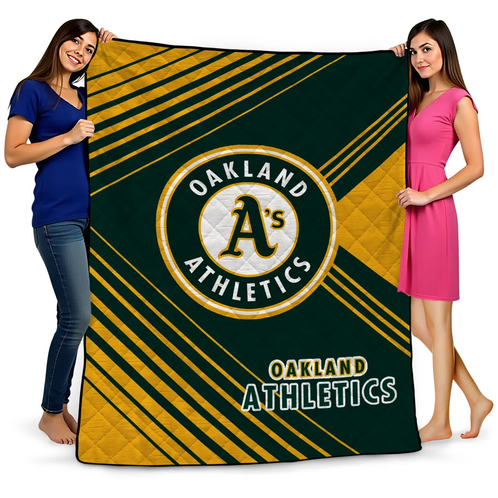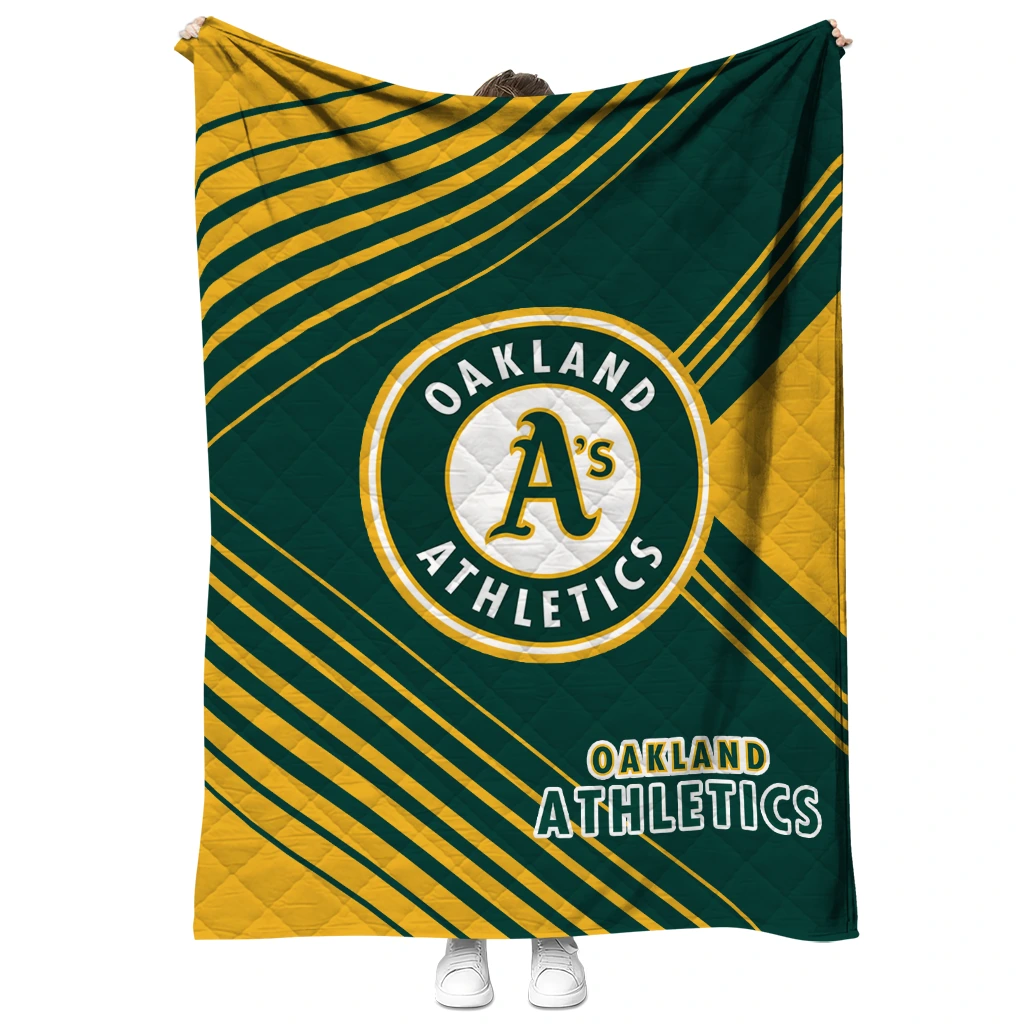 Wrap yourself in warmth and pride with the Oakland Athletics Arrow Layers Green Quilt Blanket from the Oakland Athletics Blankets collection at Yes That Blanket. Made from 100% premium quilting-weight polyester blended with a touch of microfiber, this quilt offers a smooth, soft finish you’ll love. Choose between two quilting styles—Stipple or Diagonal—and enjoy the comfort of a cotton-filled layer inside that adds extra coziness for every season. The border is available in classic black or white, giving your design a clean, timeless edge.