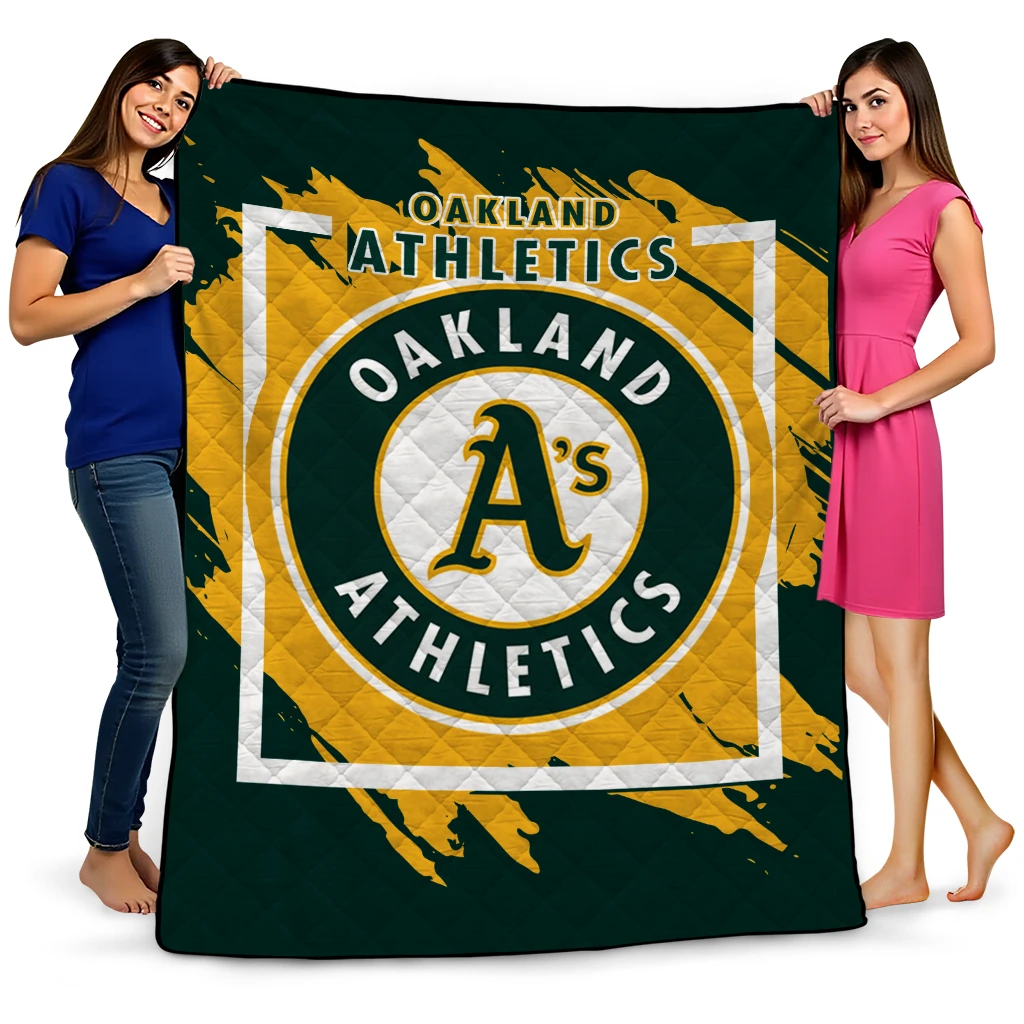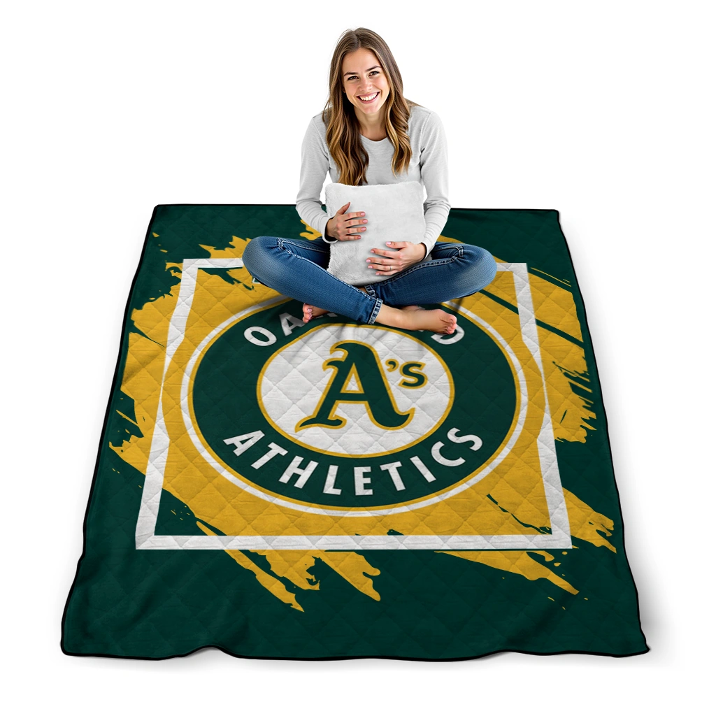 Wrap yourself in warmth and pride with the Oakland Athletics Block Border Green Quilt Blanket from the Oakland Athletics Blankets collection at Yes That Blanket. Made from 100% premium quilting-weight polyester blended with a touch of microfiber, this quilt offers a smooth, soft finish you’ll love. Choose between two quilting styles—Stipple or Diagonal—and enjoy the comfort of a cotton-filled layer inside that adds extra coziness for every season. The border is available in classic black or white, giving your design a clean, timeless edge.