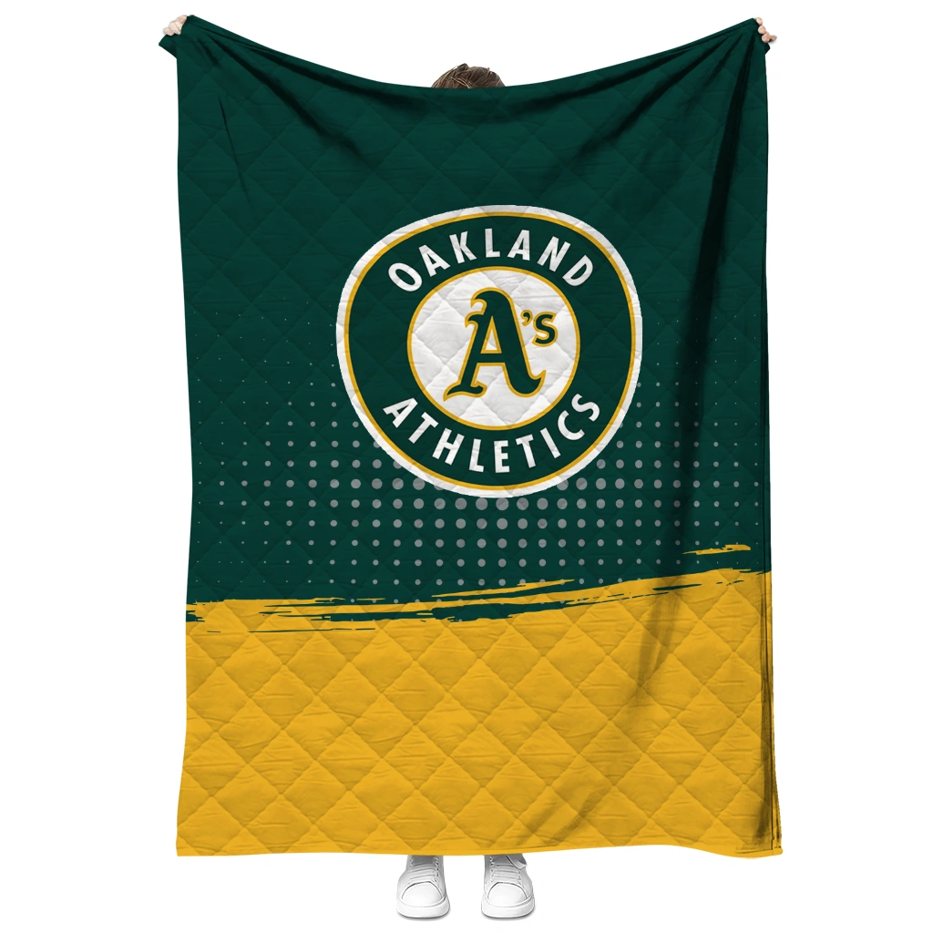 The Oakland Athletics Dot Illusion Green Quilt Blanket is more than a blanket—it’s everyday comfort, thoughtfully made. Crafted from premium quilting fabric with a soft microfiber touch, it offers a smooth hand-feel and lasting coziness. Layered quilting with a cotton-filled core provides adaptable warmth across seasons while maintaining a clean, tailored look on your bed or sofa.
