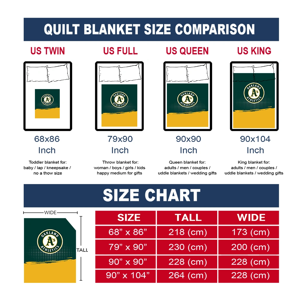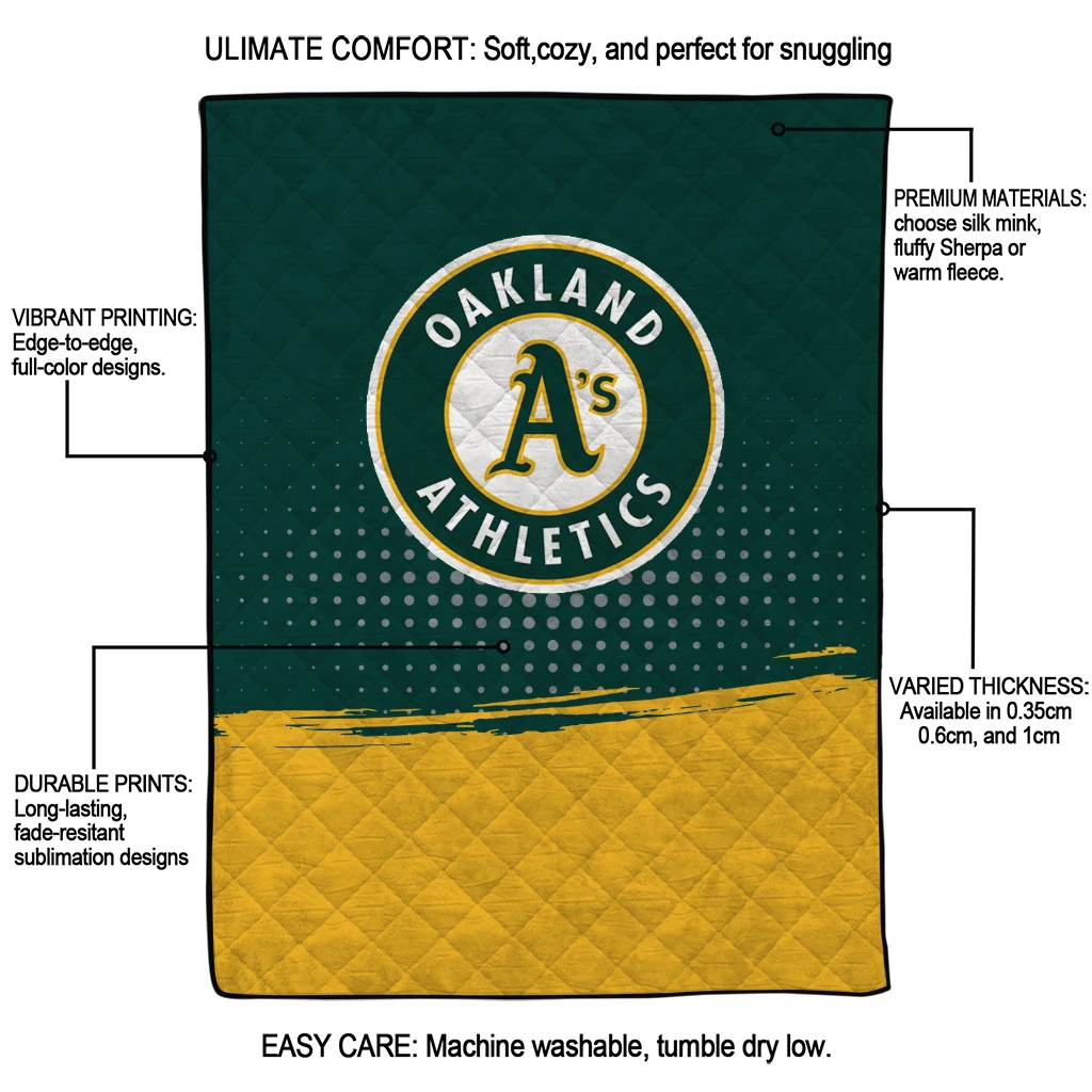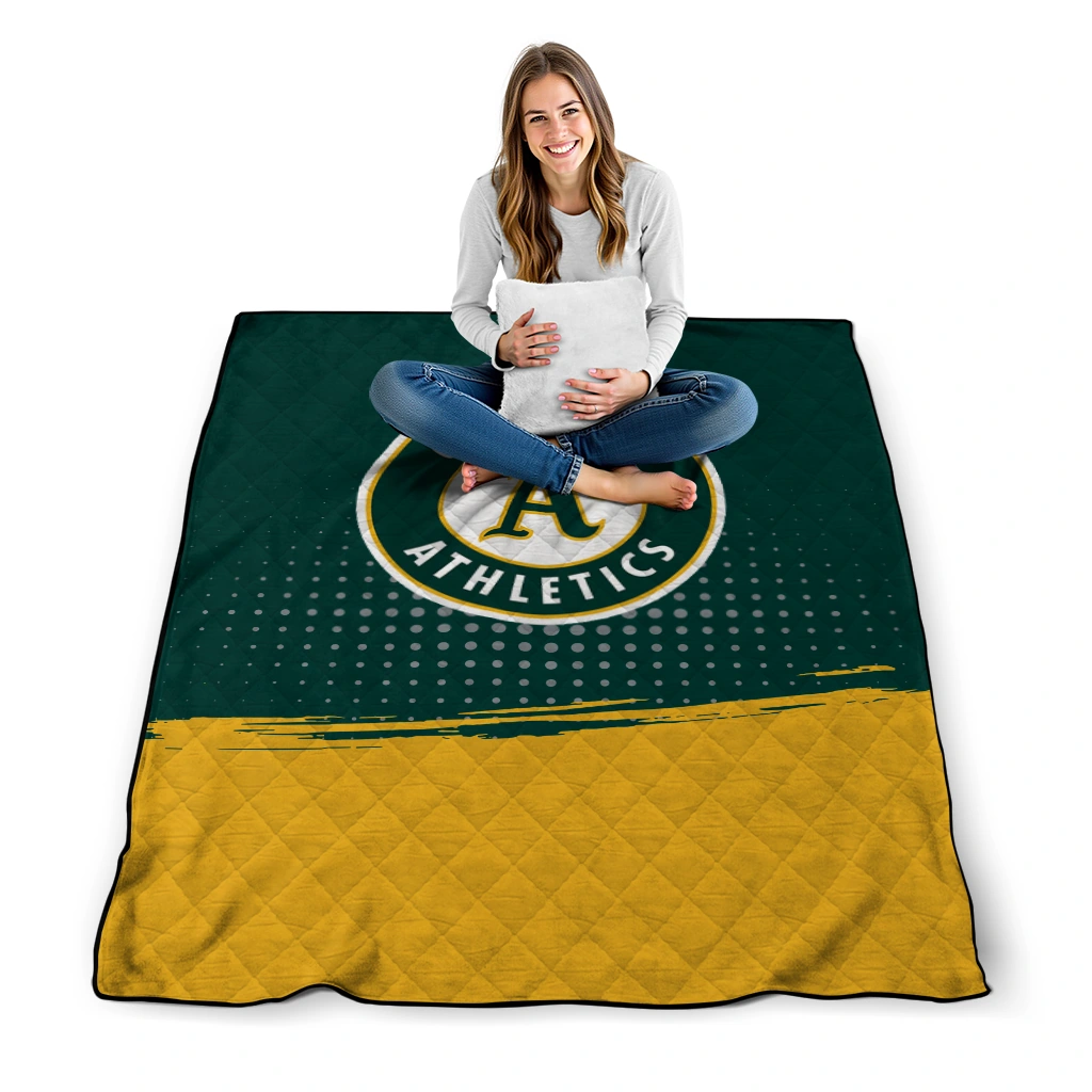 Wrap yourself in warmth and pride with the Oakland Athletics Dot Illusion Green Quilt Blanket from the Oakland Athletics Blankets collection at Yes That Blanket. Made from 100% premium quilting-weight polyester blended with a touch of microfiber, this quilt offers a smooth, soft finish you’ll love. Choose between two quilting styles—Stipple or Diagonal—and enjoy the comfort of a cotton-filled layer inside that adds extra coziness for every season. The border is available in classic black or white, giving your design a clean, timeless edge.