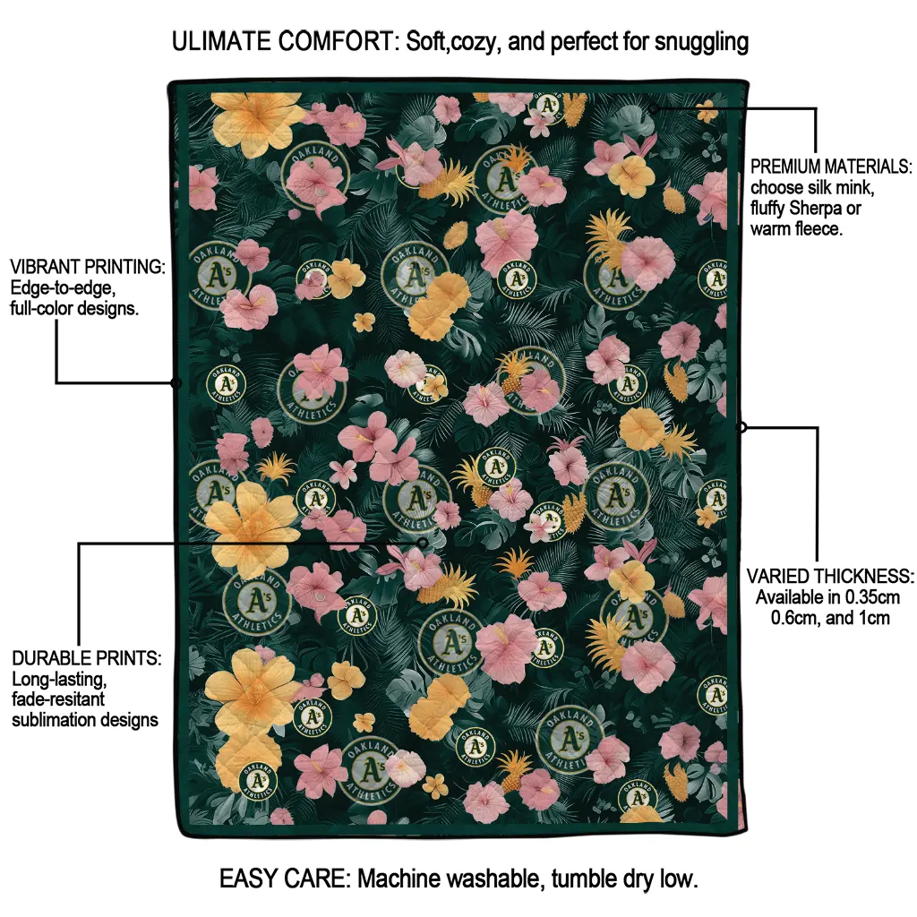 The Oakland Athletics Hibiscus Foliage Green Quilt Blanket is more than a blanket—it’s everyday comfort, thoughtfully made. Crafted from premium quilting fabric with a soft microfiber touch, it offers a smooth hand-feel and lasting coziness. Layered quilting with a cotton-filled core provides adaptable warmth across seasons while maintaining a clean, tailored look on your bed or sofa.