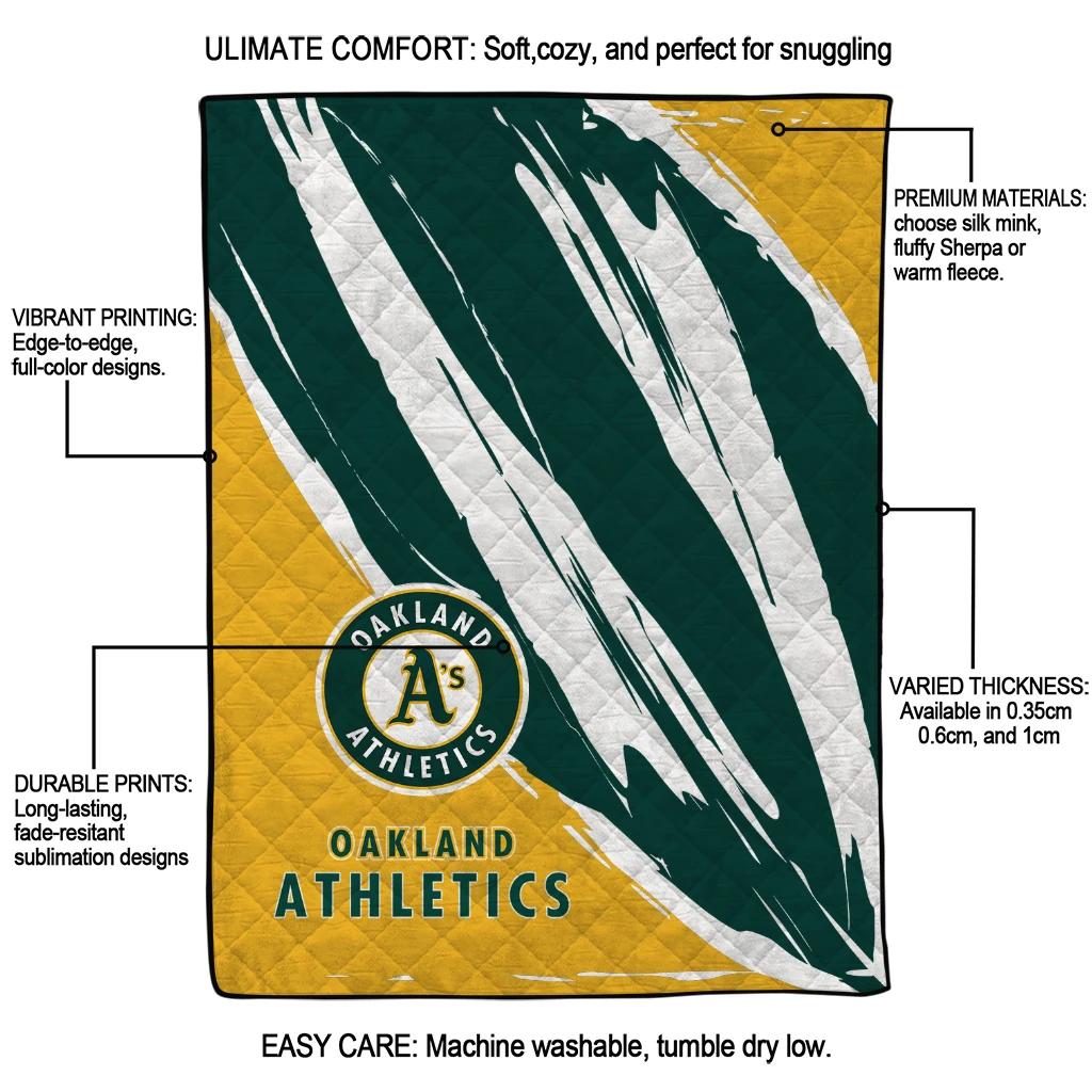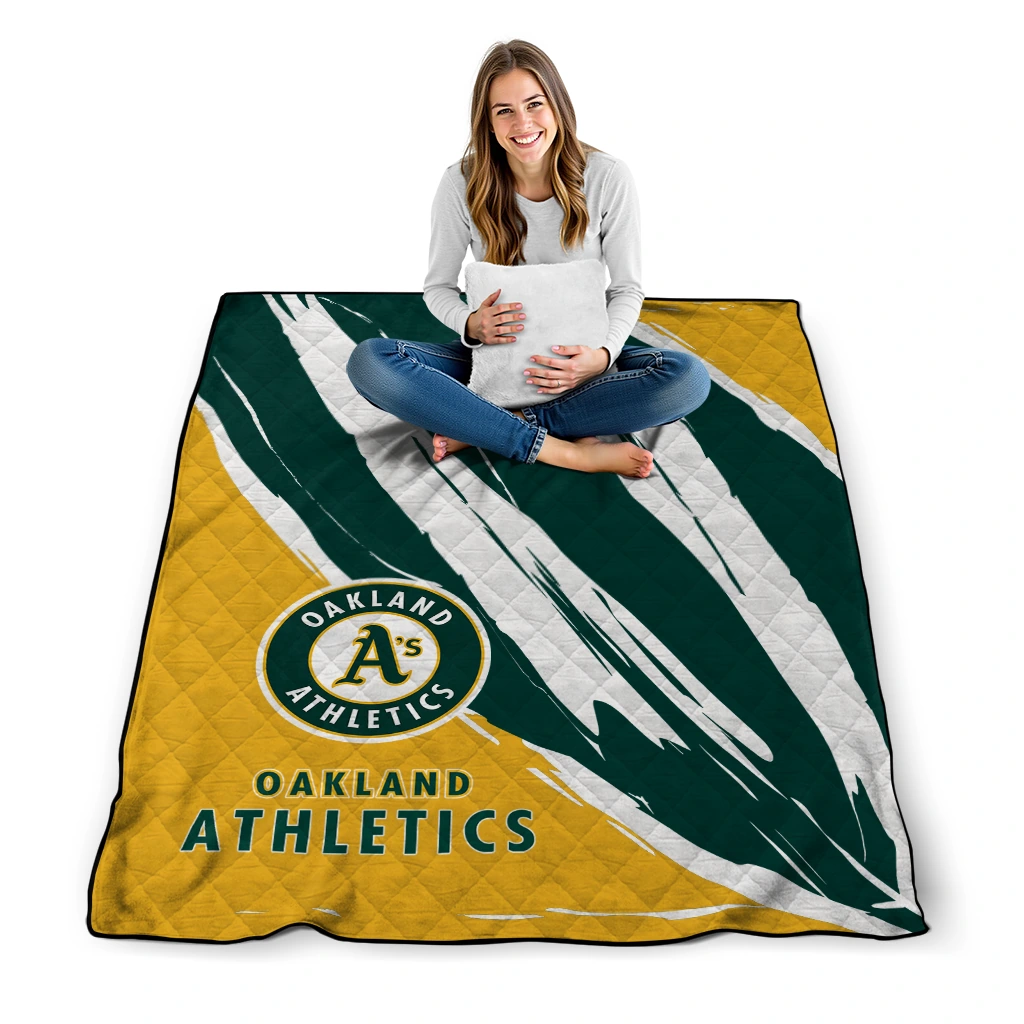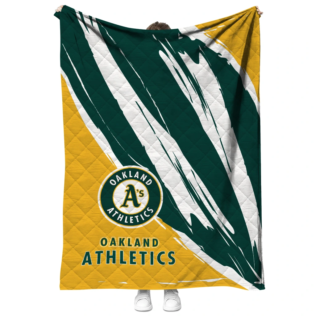 The Oakland Athletics Stroke Art Green White Quilt Blanket is more than a blanket—it’s everyday comfort, thoughtfully made. Crafted from premium quilting fabric with a soft microfiber touch, it offers a smooth hand-feel and lasting coziness. Layered quilting with a cotton-filled core provides adaptable warmth across seasons while maintaining a clean, tailored look on your bed or sofa.