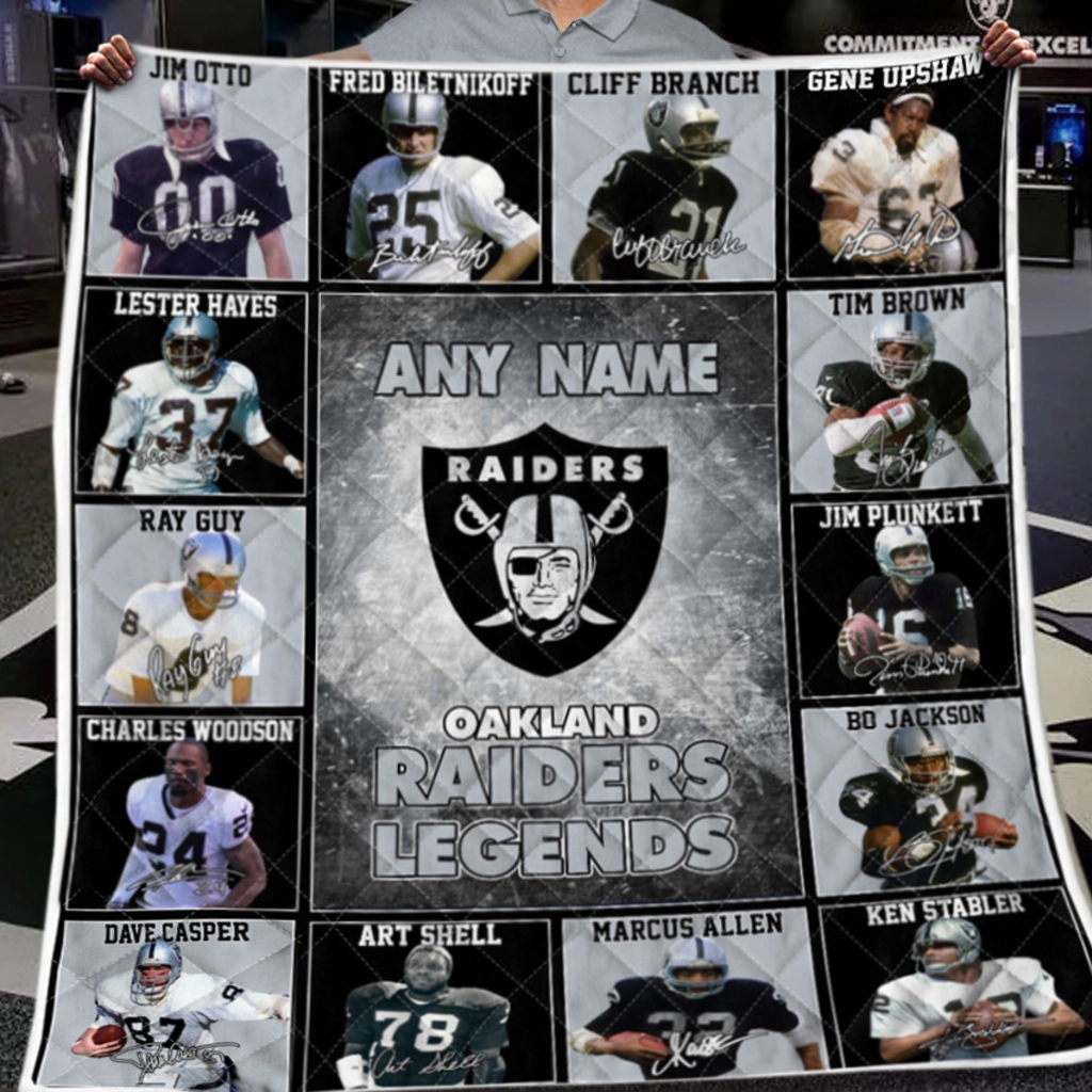 Oakland Raiders Quilt Blanket – Legends Black White
