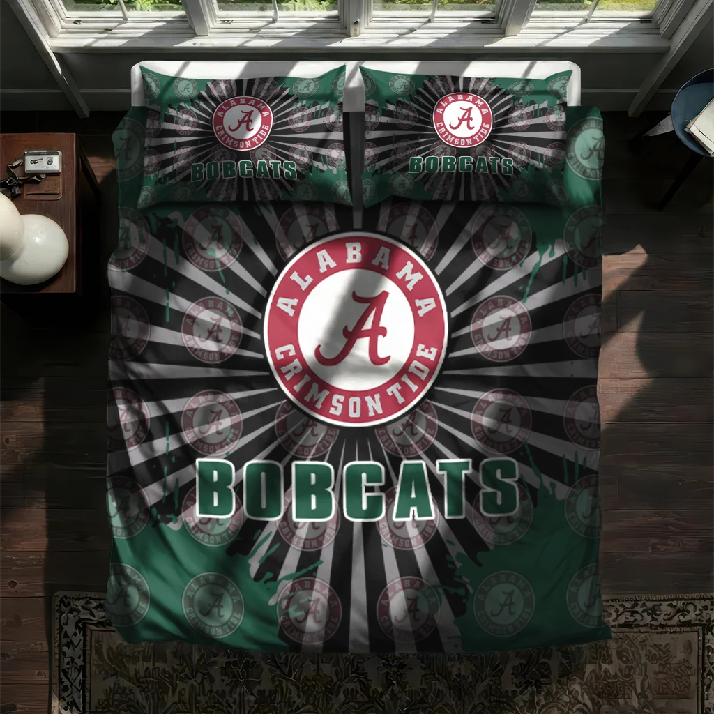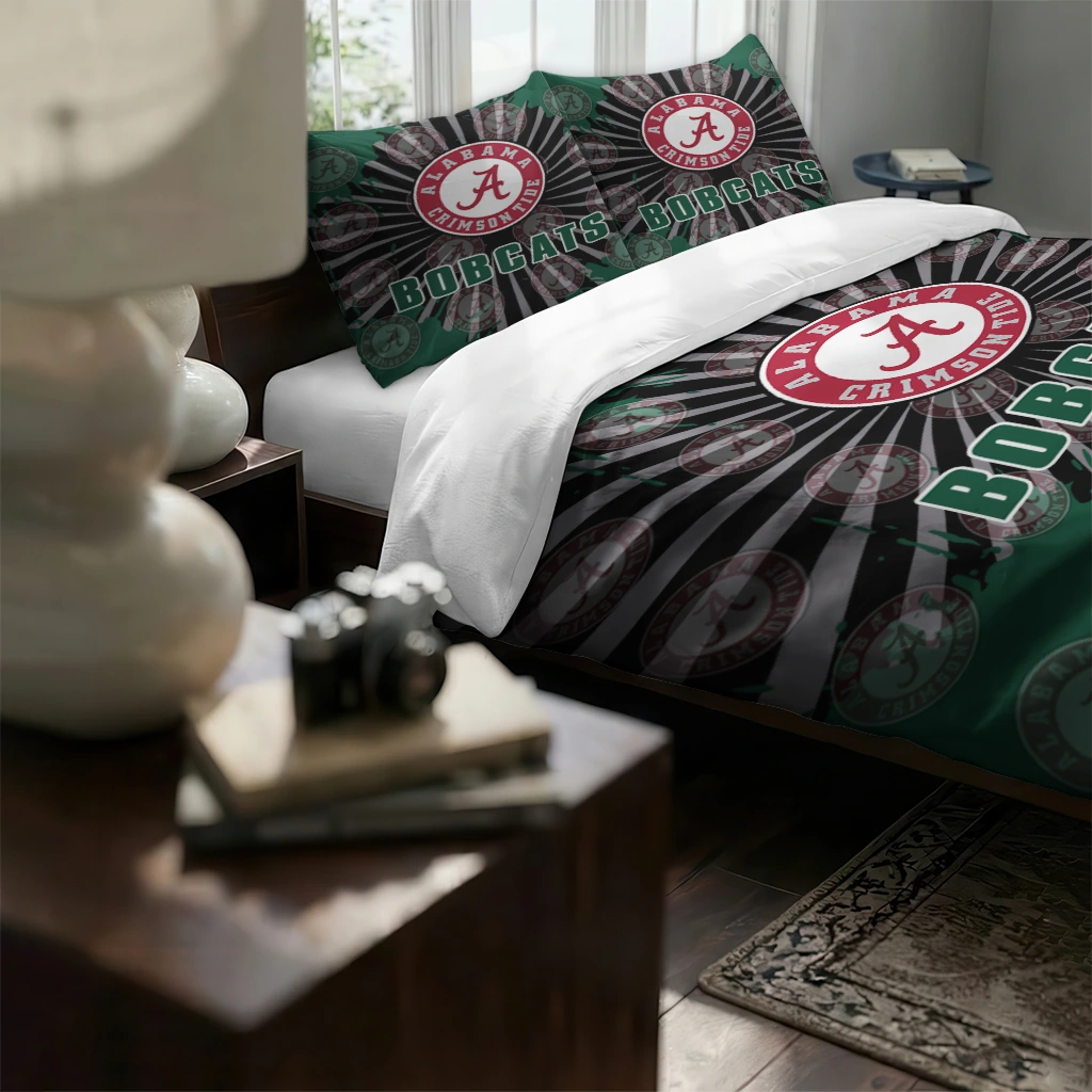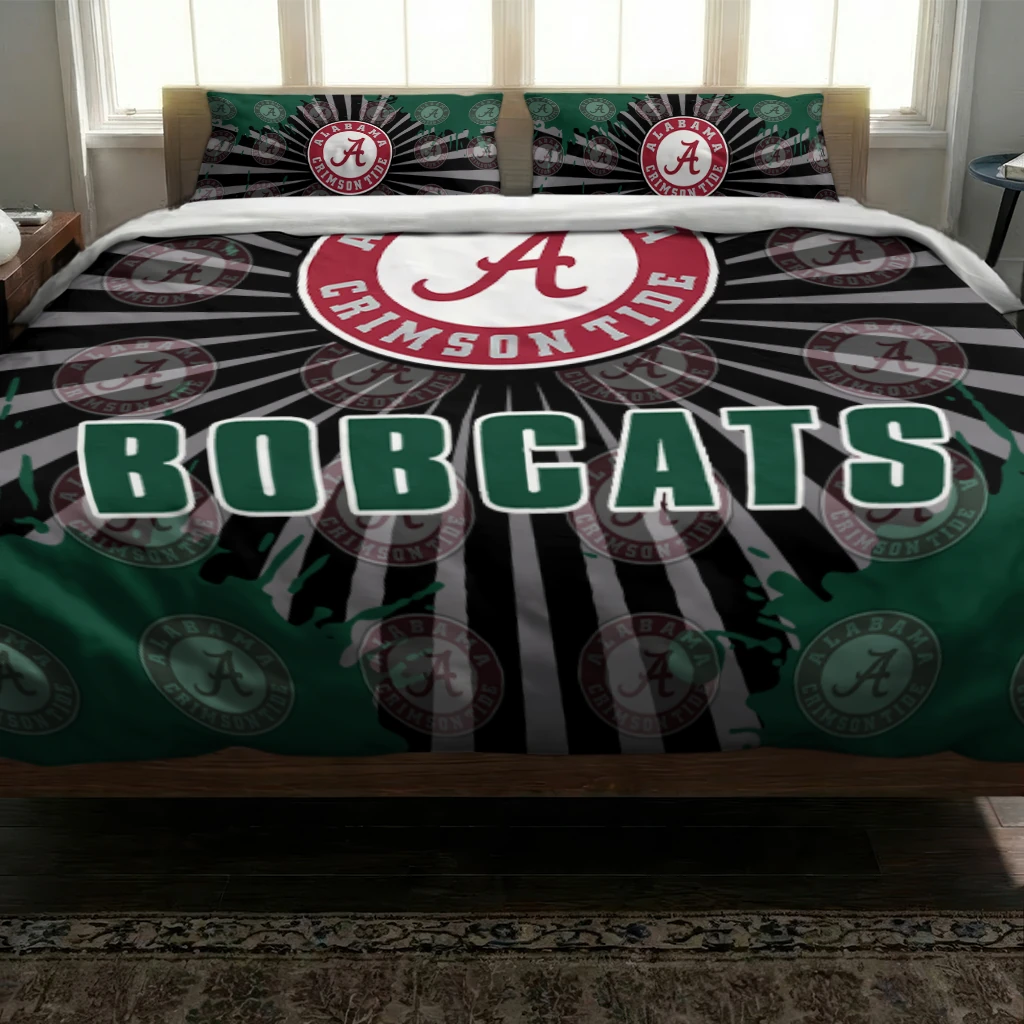 Ohio Bobcats Bedding Set – Sunburst Splatter Green Black