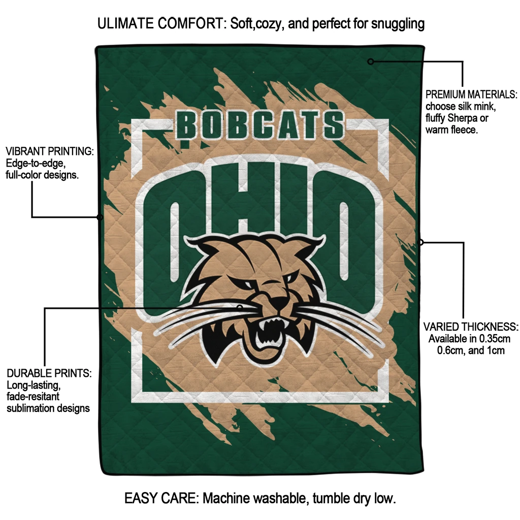 Wrap yourself in warmth and pride with the Ohio Bobcats Block Border Green Quilt Blanket from the Ohio Bobcats Blankets collection at Yes That Blanket. Made from 100% premium quilting-weight polyester blended with a touch of microfiber, this quilt offers a smooth, soft finish you’ll love. Choose between two quilting styles—Stipple or Diagonal—and enjoy the comfort of a cotton-filled layer inside that adds extra coziness for every season. The border is available in classic black or white, giving your design a clean, timeless edge.