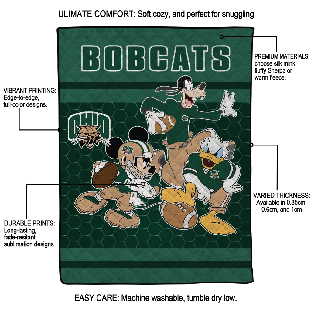 Ohio Bobcats Disney Football Green Quilt Blanket