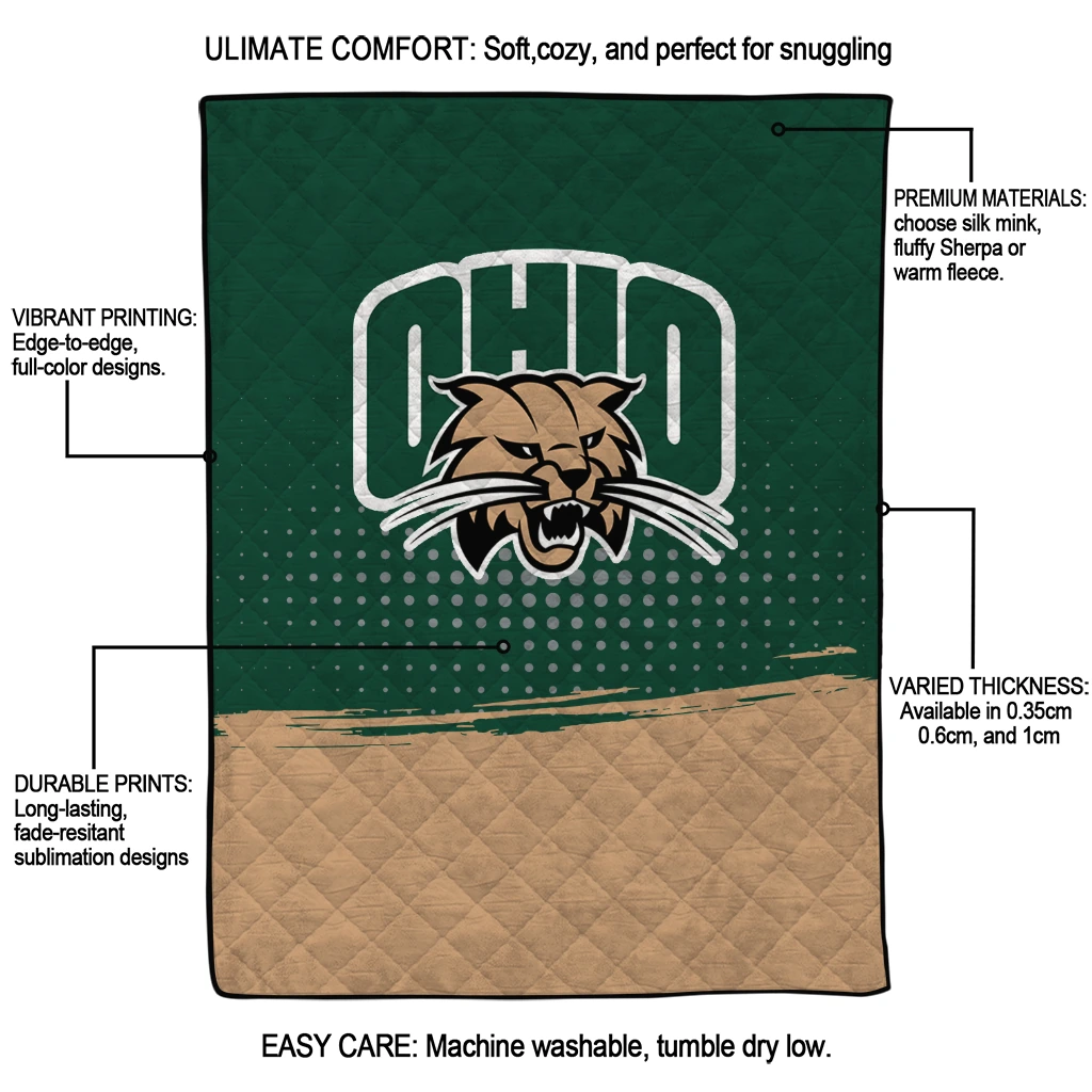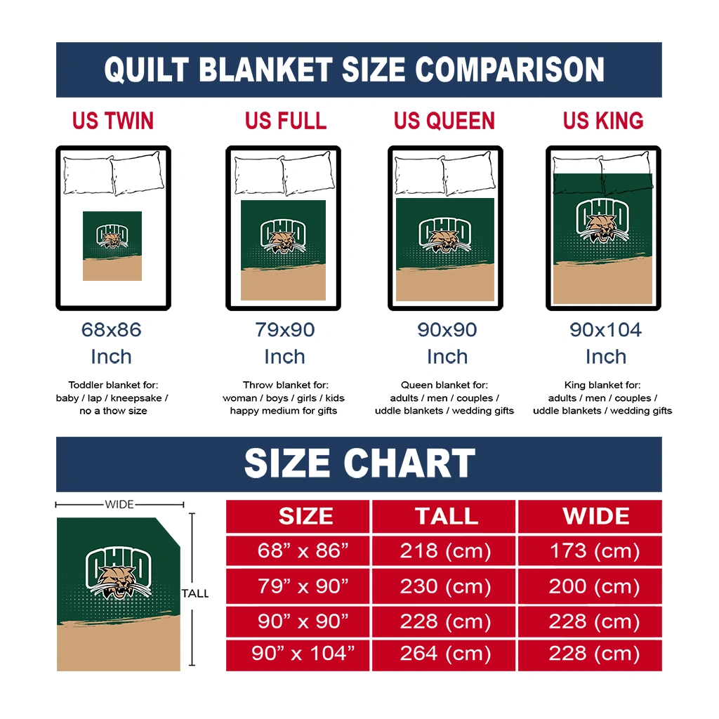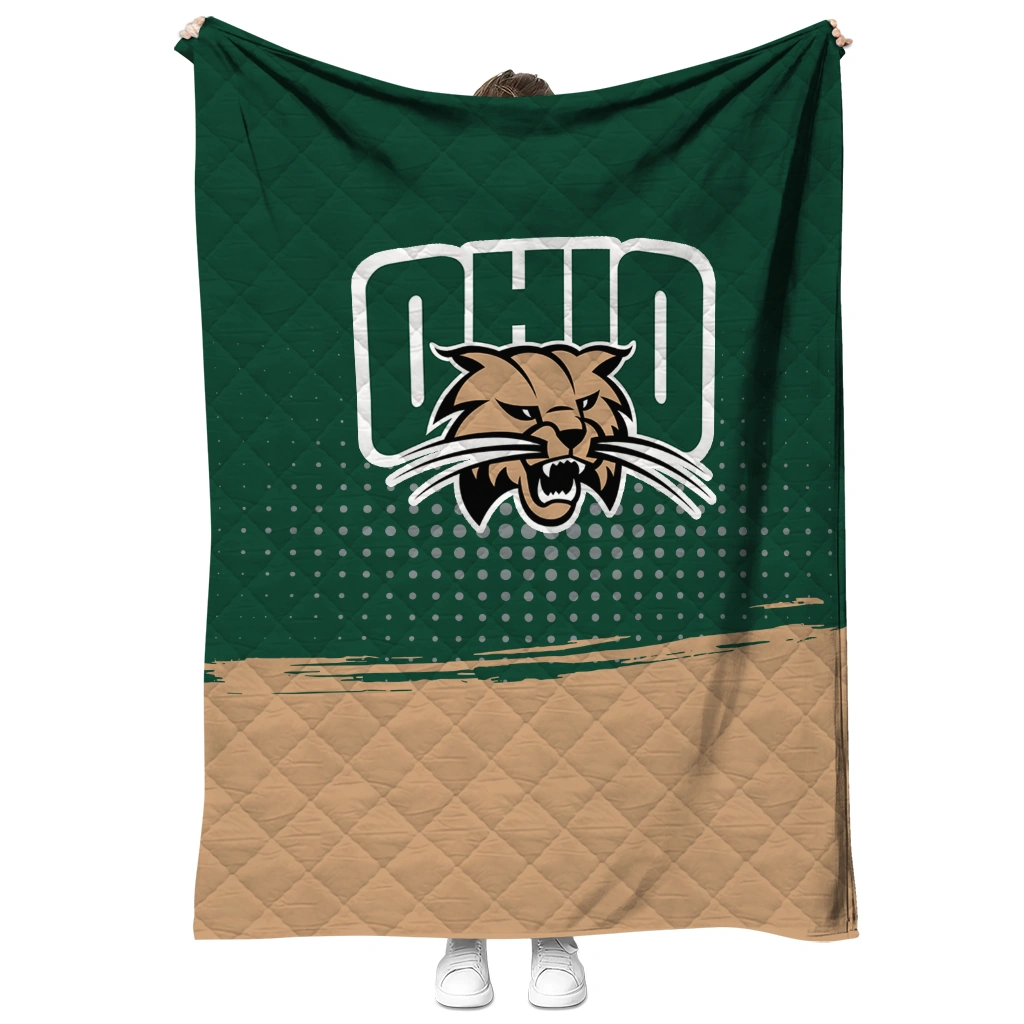 Wrap yourself in warmth and pride with the Ohio Bobcats Dot Illusion Green Quilt Blanket from the Ohio Bobcats Blankets collection at Yes That Blanket. Made from 100% premium quilting-weight polyester blended with a touch of microfiber, this quilt offers a smooth, soft finish you’ll love. Choose between two quilting styles—Stipple or Diagonal—and enjoy the comfort of a cotton-filled layer inside that adds extra coziness for every season. The border is available in classic black or white, giving your design a clean, timeless edge.