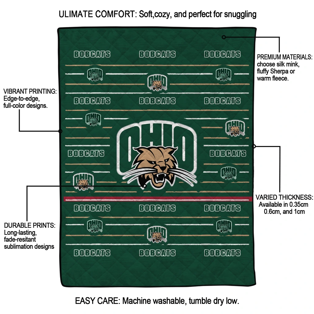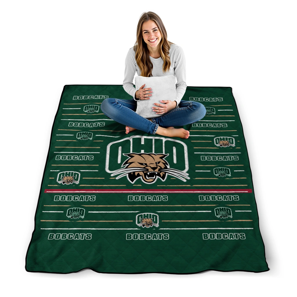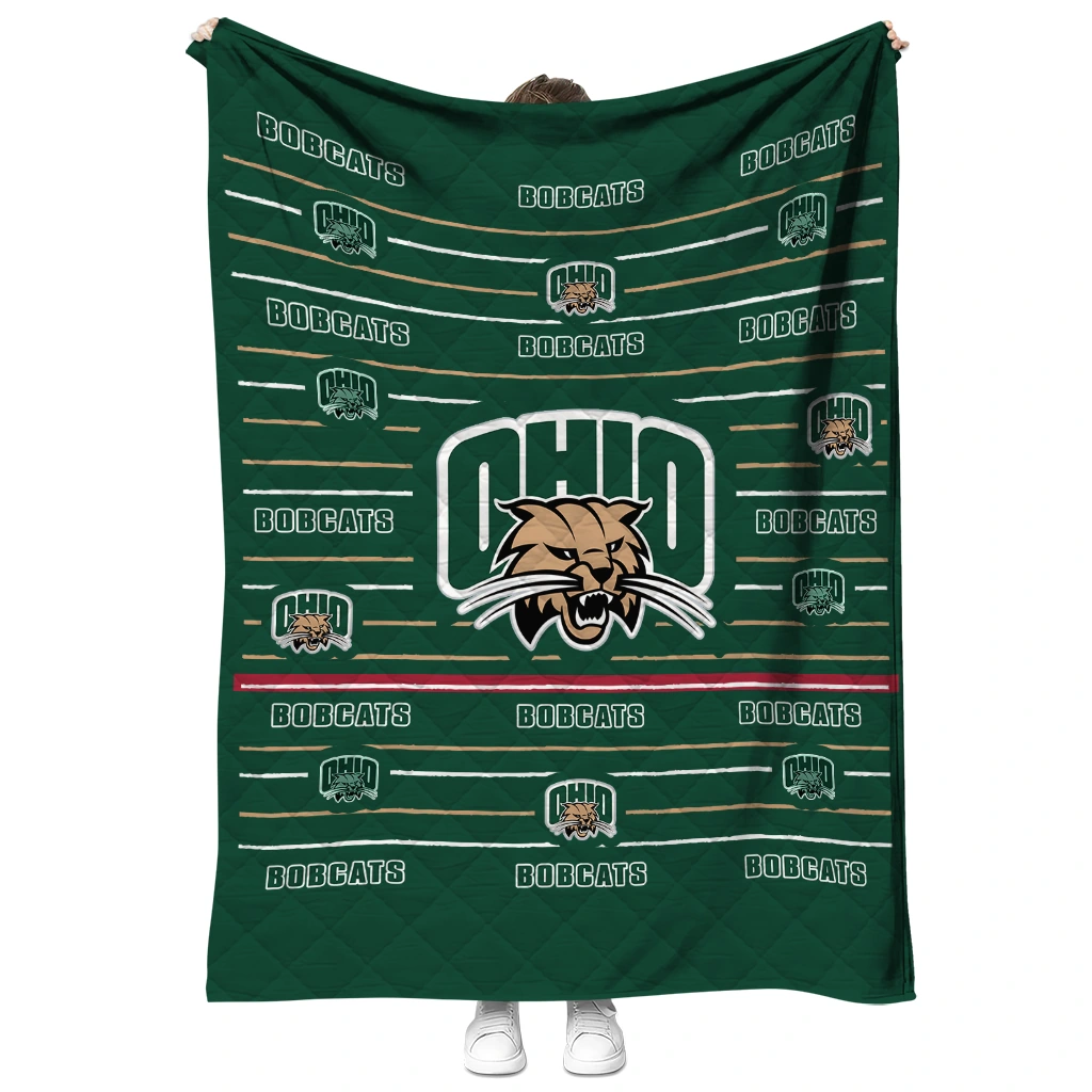 Ohio Bobcats Handdrawn Stripes Green Quilt Blanket